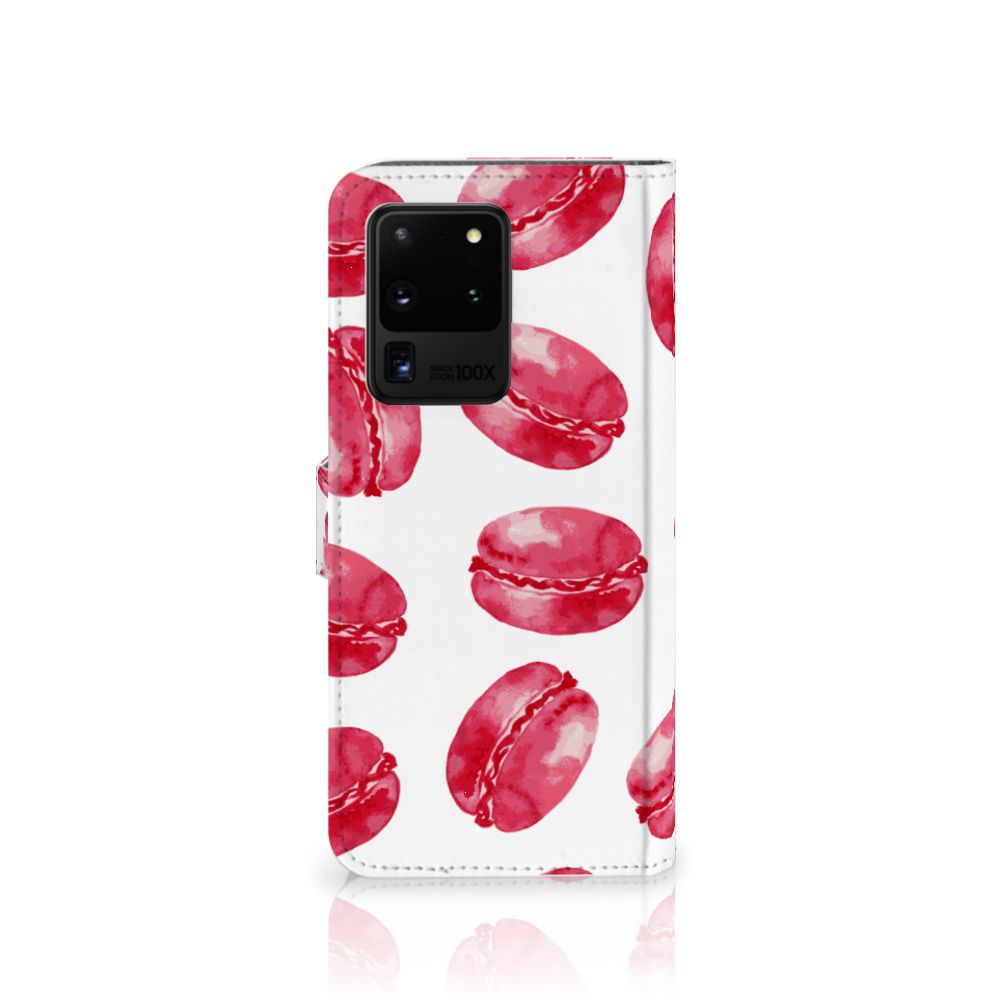 Dit hoesje met Pink Macarons is een zeer opvallende bescherming voor jouw smartphone. Macarons zijn Franse koekjes: kleine, rond en luchtig. Ze worden in veel verschillende smaken gemaakt, herkenbaar aan de verschillende kleuren zoals chocolade (donkerbruin), mokka (middenbruin), kersen (rood), pistache (groen), aardbei (roze), framboos (karmijn). Deze kleuren kun je niet allemaal zien op dit fraaie design hoesje met roze macarons. Heb je altijd al een Samsung Galaxy S20 Ultra Book Cover willen hebben met roze macarons? Grijp dan nu je kans. Een boekhoesje heeft zeer veel goede eigenschappen, zoals opbergvakjes aan de binnenkant en een magnetische sluiting in de vorm van een lipje aan de buitenzijde. Dit design hoesje met roze macarons wordt aan alle zijden bedrukt, zelfs het lipje krijgt een afbeelding van een roze macaron. De houder aan de binnenkant van het hoesje is van TPU.