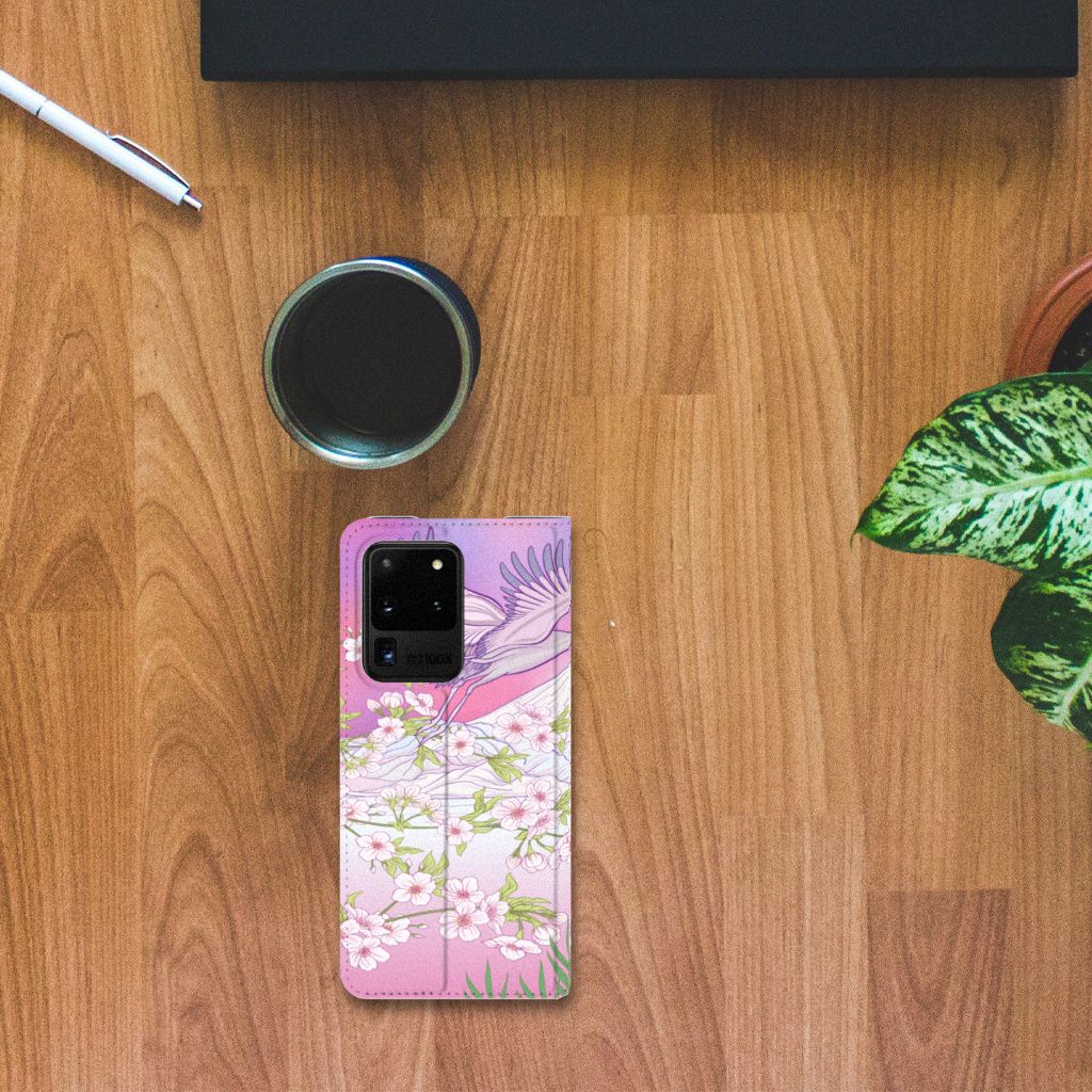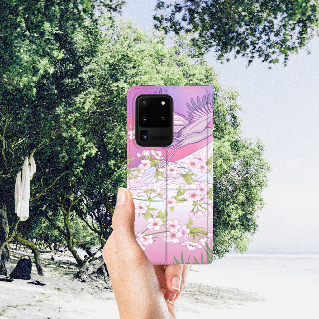 Met deze opvallende en kleurrijke Samsung Galaxy S20 Ultra Hoesje maken met Bird Flying design blijft jouw toestel in uitzonderlijke staat. Een ooievaar fleurt al sinds mensenheugenis dorpen en steden op en doet dit ook met jouw stand case. Het design hoesje met deze reigerachtige vogel in roze en paarse kleuren is een zeer goede bescherming voor je telefoon. Het spetterende stand hoesje met opvallende ooievaar beschermt jouw telefoon aan alle zijden en beschikt over een opbergvakje voor een pasje of briefgeld. De roze met paarse case sluit perfect af met de magneet aan de binnenzijde. De houder aan de binnenzijde van het schitterende stand hoesje is van TPU. Dit is ook nog eens zeer flexibel materiaal. Het pu leer aan de buitenkant oogt zeer chique. Kijk voor andere dieren op een design hoesje binnen deze fraaie collectie. Ook kun je zelf een hoesje ontwerpen met je favoriete huisdier.