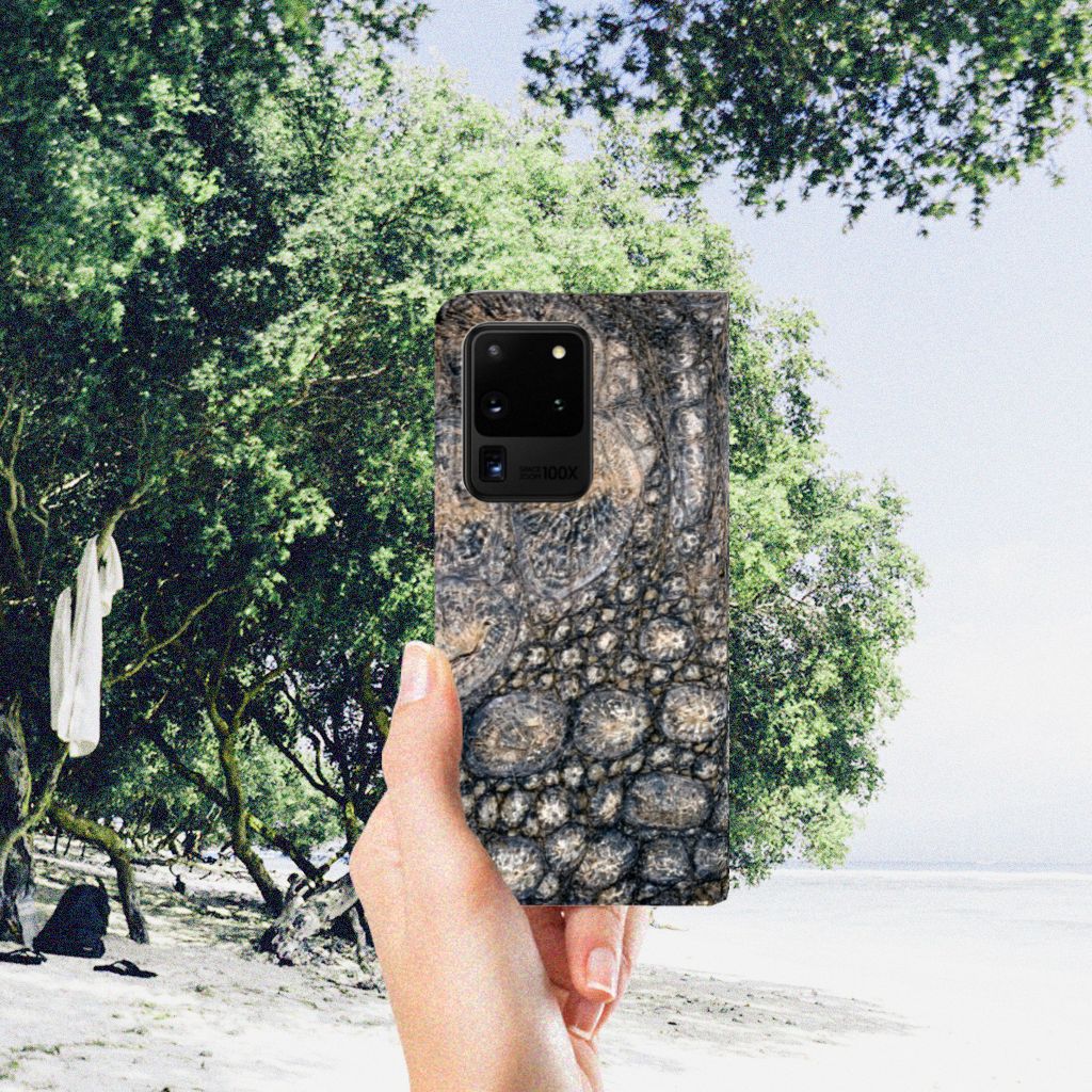 De dikke huid van een krokodil is zeer gevoelig. Met deze Samsung Galaxy S20 Ultra Hoesje maken met Krokodillenprint hoef je je geen zorgen te maken dat je smartphone schade oploopt. De krokodillenprint zetten we op een stand case op het moment dat jij je bestelling plaatst. Hierdoor krijgt jouw telefoon een print van krokodillen van zeer hoge kwaliteit. We bedrukken jouw gehele stand case met de vlekken van de krokodil. Je bankpas of creditcard kun je stoppen in het vakje aan de binnenkant van het telefoonhoesje met krokodillenprint. Met hun zintuigen kunnen krokodillen hitte, kou, aanraking, waterstroming en chemische stoffen detecteren. Jouw stand hoesje met krokodillenprint beschermt perfect tegen invloeden van buitenaf.