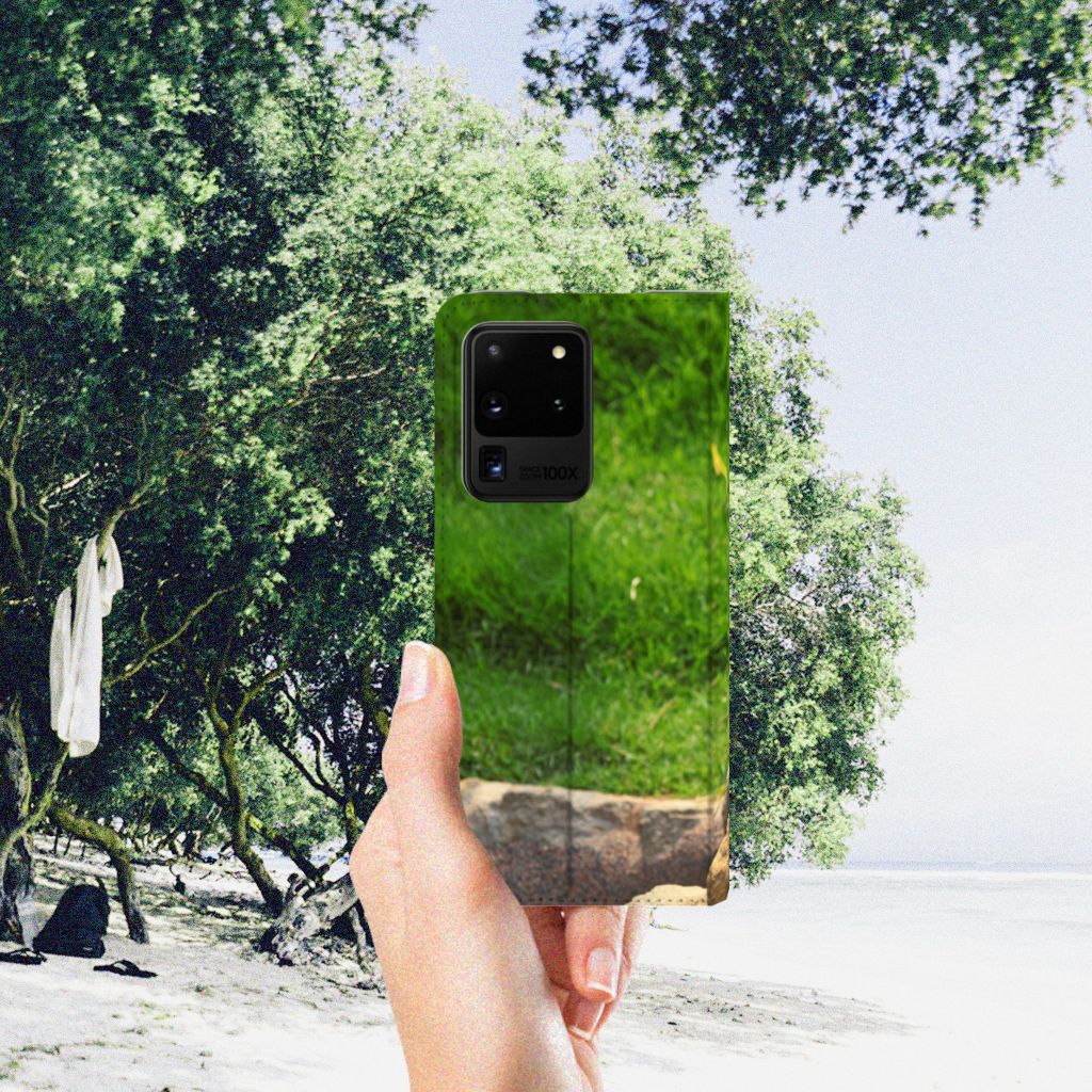 Ons design hoesje met afbeelding van een Panda is momenteel bijzonder populair. Wij denken te weten waarom dit zo is. De panda wordt door de bolle vorm van het gezicht in combinatie met de 'grote' zwarte ogen beschouwd als aandoenlijk en aaibaar. Dit maakt deze stand case zeer geliefd onder zeer veel smartphonegebruikers. Een Samsung Galaxy S20 Ultra Hoesje maken met panda is de ultieme bescherming van de smartphone. Wanneer alle zijden van de telefoon beschermd worden, kan er namelijk weinig fout gaan. Deze zijden worden volledig bedrukt met panda. Wij zijn ervan overtuigd dat jij jezelf populair maakt met dit hoesje, waardoor je weinig pandapunten zult scoren. De stand case heeft een houder van de TPU aan de binnenzijde, net als een opbergvakje voor een pasje en een magnetische sluiting.