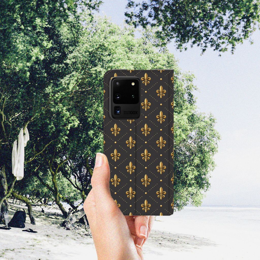 Hét symbool van het Franse koningshuis, de fleur-de-lis (ook fleur-de-lys of Franse lelie), mag natuurlijk niet ontbreken in onze collectie design hoesjes. De naam betekent letterlijk lelie-bloem. Deze Franse Lelie kunnen we op verschillende soorten cases printen, zoals een zeer praktische en onderscheidende stand case. Een Samsung Galaxy S20 Ultra Hoesje met Magneet met Franse Lelie ziet er niet alleen ontzettend chique uit, het is dankzij onder meer het opbergvakje aan de binnenzijde en de standaard zeer praktisch. Het is niet helemaal duidelijk welke bloem model heeft gestaan voor het Franse symbool. Wel is duidelijk dat de Franse lelie volledig tot wasdom komt op deze handige stand case. Het beschikt verder over een houder van tpu en een magnetische sluiting aan de binnenkant. We bedrukken de case op het moment dat jij deze bestelt.
