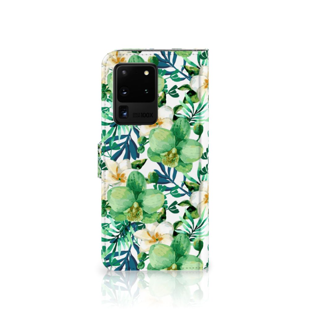 Samsung Galaxy S20 Ultra Hoesje met ruimte voor drie pasjes Orchidee Groen