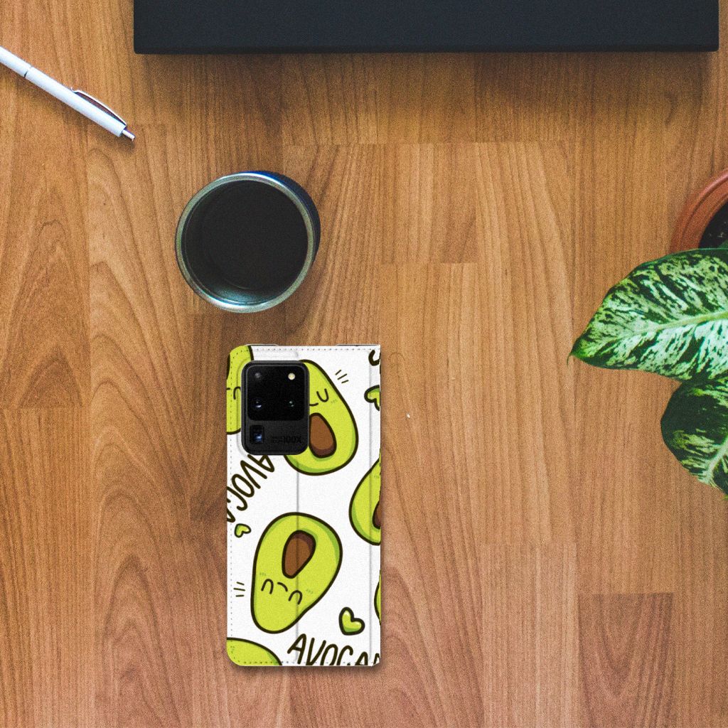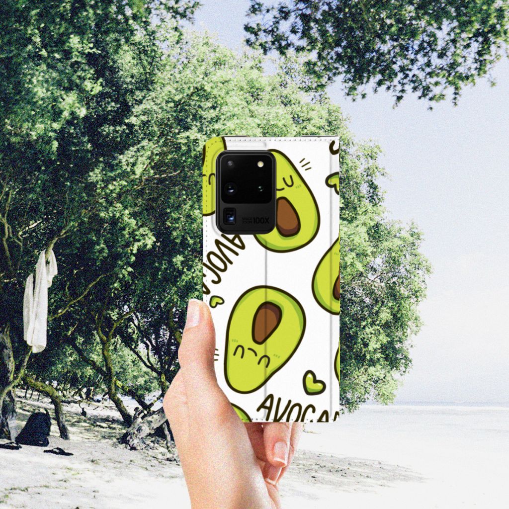 Avocado’s zijn niet alleen heel erg goed voor je, ze zijn ook super leuk op je telefoonhoesje. Dit unieke design vol schattige avocado’s zal jou en iedereen om je heen meteen opvrolijken. Nog een voordeel van dit design: deze avocado’s bederven nooit! Dit leuke Avocado Singing-ontwerp staat op een Magnet Case voor de Samsung Galaxy S20 Ultra. Dit populaire smartphonehoesje heeft één vakje en is aan alle zijden bedrukt. Met de standcase zet je je telefoon gemakkelijk neer, zodat je je handen vrij hebt als je bijvoorbeeld filmpjes bekijkt. De binnenkant van de standcase is van grijs PU-leer. Dat is ideaal, omdat je daardoor niet snel vlekken ziet op je hoesje.
