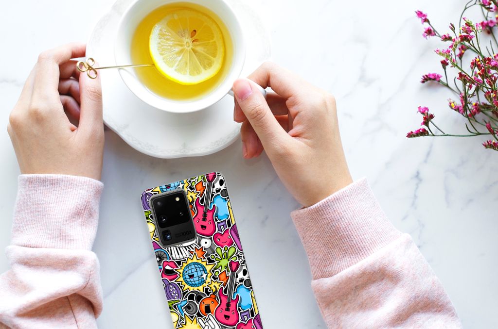 Ben je op zoek naar een uniek telefoonhoesje voor je Samsung Galaxy S20 Ultra? Dan ben je bij B2C Telecom aan het juiste adres! Speciaal voor jou hebben we dit prachtige Punk Rock design in onze collectie hoesjes opgenomen. Het design wordt bedrukt op een Silicone Back Cover en is gemaakt van flexibel rubber. Het design wordt alleen aan de bovenkant van het hoesje bedrukt en de randen blijven transparant. Aan de zijkanten zijn uitsparingen gemaakt waardoor je met gemak alle knoppen en poorten kunt bedienen. Wij adviseren om dit hoesje in combinatie met een screenprotector te gebruiken voor een langere levensduur van je telefoon. Wil je dit design hoesje nog iets extra's geven? Voeg dan gratis je naam of een quote toe! Is dit design hoesje toch niet helemaal wat je zocht? Ontwerp dan zelf een hoesje in ons ontwerpprogramma.