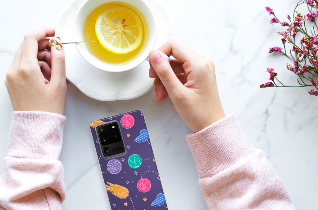 Ben je een beetje geïnteresseerd in buitenaards leven? Dan kan je wel eens enthousiast raken van deze Samsung Galaxy S20 Ultra Silicone Back Cover met Space print. Dus mensen die van science fiction houden zullen deze case ongetwijfeld mooi vinden. Er zijn verschillende planeten en vliegende schotels te ontdekken in dit design hoesje. Dit kunstwerkje is voor heel weinig geld te bestellen op onze website. Je krijgt er maximale bescherming van je smartphone voor terug. De TPU case wordt alleen aan de bovenkant met space bedrukt en is zeer flexibel. De randen van het hoesje blijven transparant en worden niet bedrukt. Je zult ontdekken dat dit hele stevige telefoonhoesje een heel goede bescherming biedt tegen alle vormen van schade. Met dit hoesje hoef je niet bang te zijn dat er krassen op je design komen of scheuren in je scherm.