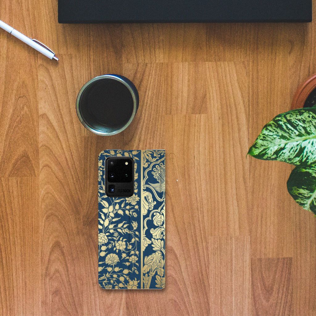 Dit koninklijke hoesje met Beige Flowers ziet er oogverblindend uit. De beige kleur geeft dit design hoesje een super fraai en chique uiterlijk. Je voelt jezelf de koning te rijk als je jouw telefoon beschermt met deze elegante case. De donkerblauwe achtergrond geeft dit design hoesje extra uitstraling en combineert goed met beige. Het hoesje ziet er zeer kostbaar uit, maar is erg goedkoop. Voor een zeer bescheiden bedrag ben je in het bezit van dit design hoesje. De case geeft jou en je smartphone extra status. Voor goedkope design hoesjes zit je goed bij B2C Telecom. Het design staat op een stand case. Deze case beschermt jouw Samsung Galaxy S20 Ultra aan alle kanten en beschikt over een 1 opbergvakje en een speciale standaard. Het Smart Cover wordt afgesloten met een magneet aan de binnenzijde. De houder aan de binnenzijde is van TPU. Alle zijden van de stand case worden bedrukt.