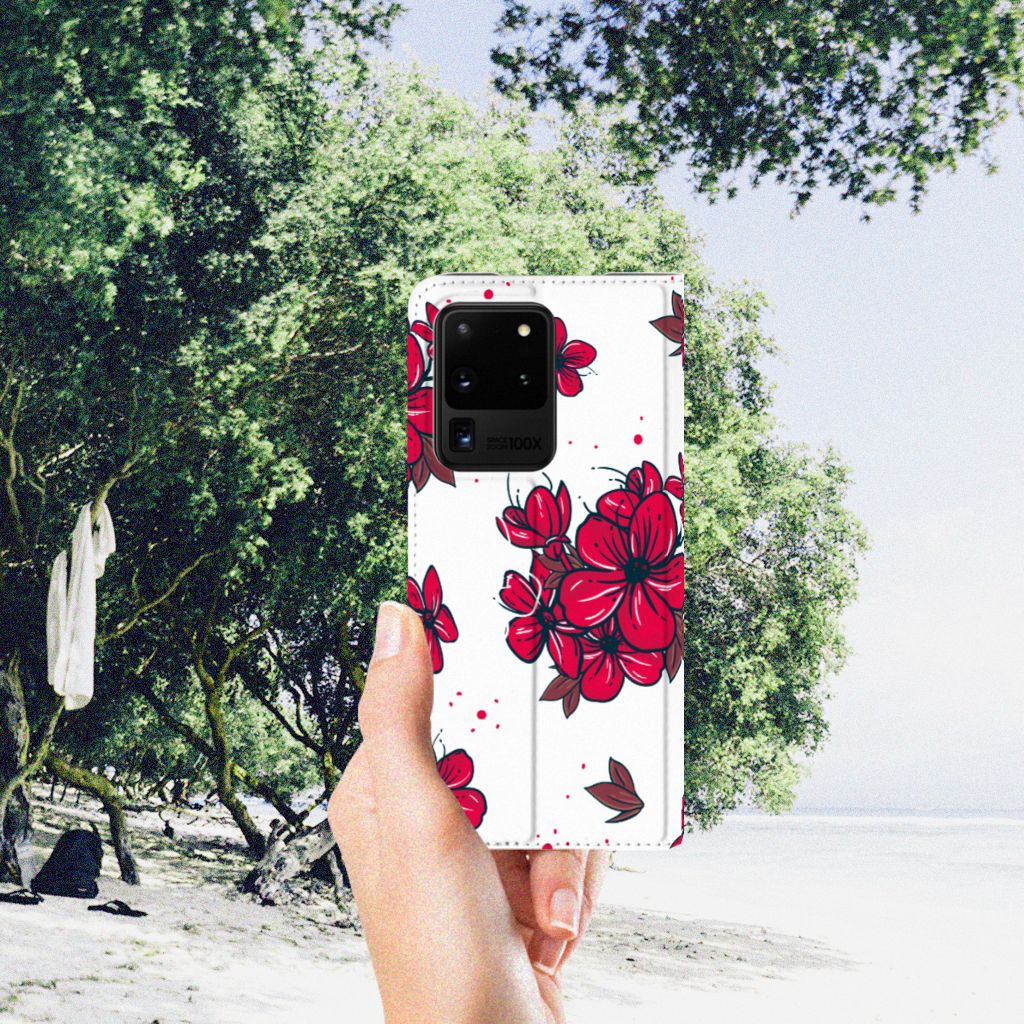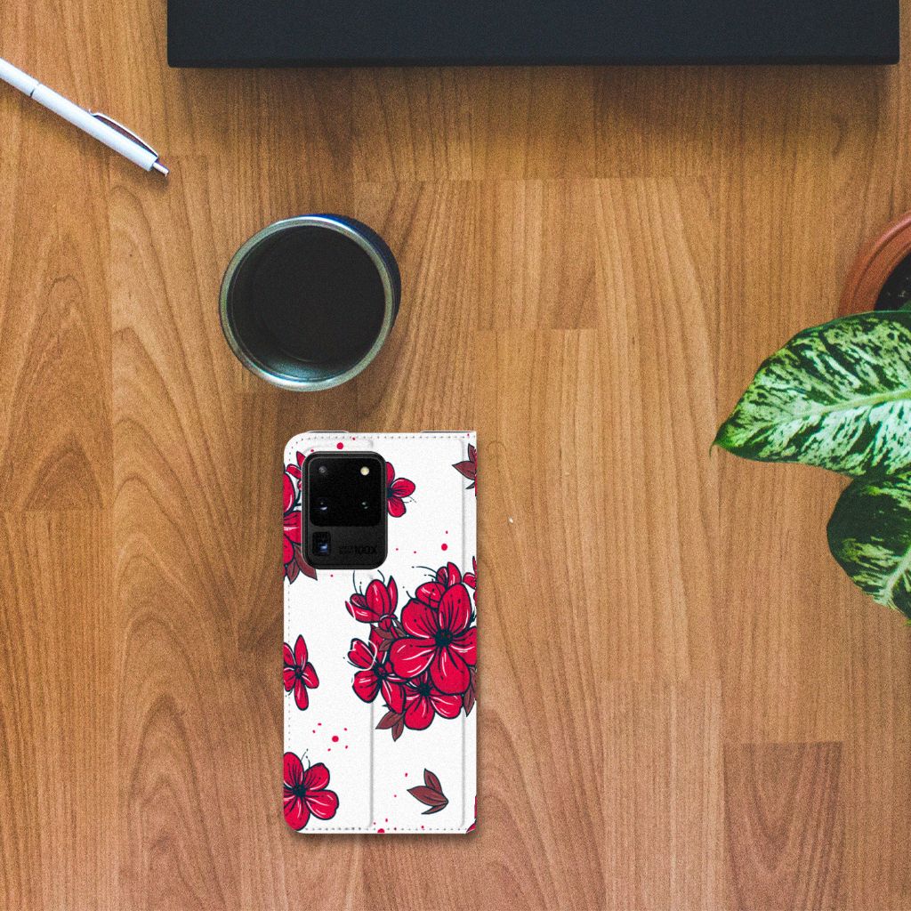 Wie denkt aan Japan, denkt al gauw aan die prachtige kersenbomen die in het begin van de lente in bloei staan en het land hullen in een prachtige zee van bloesem. Wie elke dag wil genieten van deze mooie kersenbloesem, kan natuurlijk ook kiezen voor dit mooie telefoonhoesje! Dankzij de witte achtergrond knallen de rode bloemetjes er mooi uit. Dit blossom red-design staat op een Smart Cover voor de Samsung Galaxy S20 Ultra. Dit populaire smartphonehoesje met het heeft één vakje voor een pasje of briefgeld en is aan alle zijden bedrukt. Met de standcase zet je je telefoon gemakkelijk neer, zodat je je handen vrij hebt als je bijvoorbeeld een video wilt kijken. De binnenkant van de standcase is van grijs PU-leer. Dat is fijn, omdat je daardoor niet snel vlekken ziet op je hoesje.