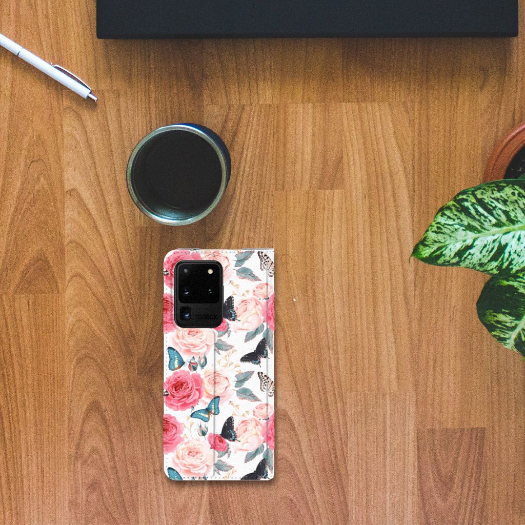 Ben je op zoek naar een uniek telefoonhoesje voor je Samsung Galaxy S20 Ultra? Dan ben je bij B2C Telecom aan het juiste adres! Speciaal voor jou hebben we dit prachtige Butterfly Roses design in onze collectie hoesjes opgenomen. Het design wordt bedrukt op een Smart Cover en heeft een vakje aan de binnenkant voor een pasje. Het fijne aan dit hoesje is dat je het als standaard neer kunt zetten. Hierdoor geniet je nog meer als je een filmpje aan het kijken bent op je telefoon. Het hoesje wordt afgesloten door magneten aan de binnenkant. Wil je dit design hoesje nog iets extra's geven? Voeg dan gratis je naam of een quote toe! Is dit design hoesje toch niet helemaal wat je zocht? Ontwerp dan zelf een hoesje in ons ontwerpprogramma.