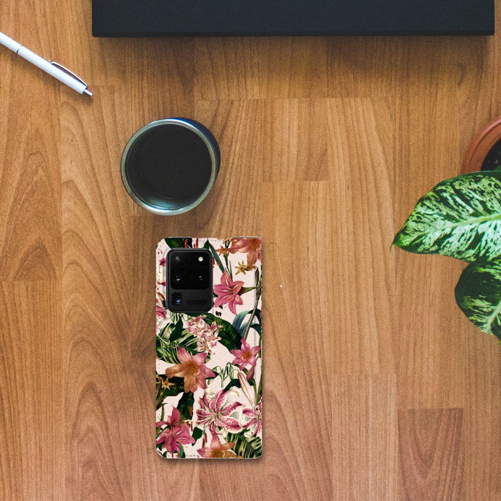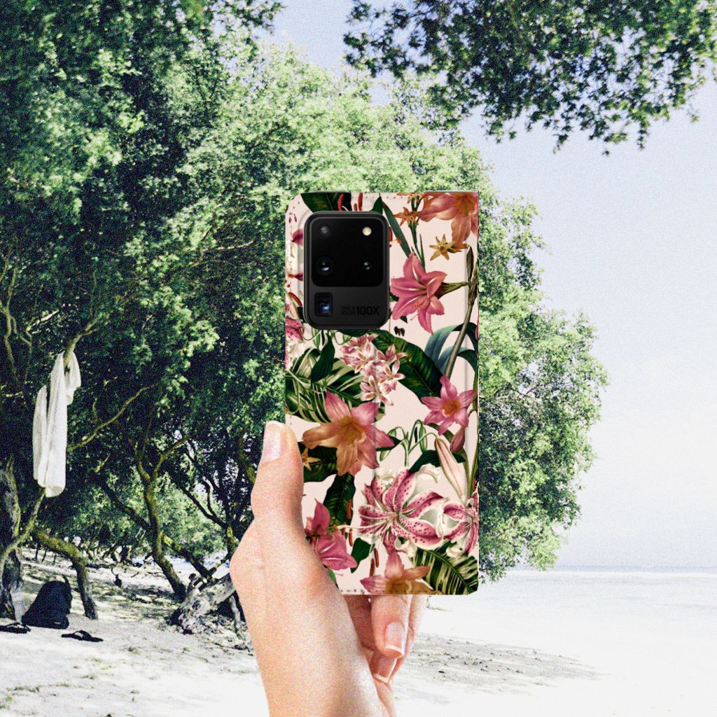 Samsung Galaxy S20 Ultra Telefoonhoesje met Pasjes Bird Flowers
