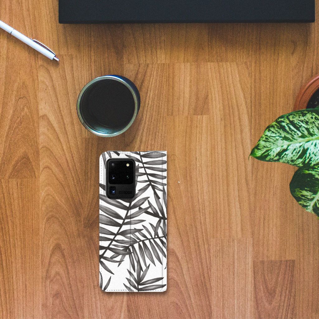 Ben je op zoek naar een uniek telefoonhoesje voor je Samsung Galaxy S20 Ultra? Dan ben je bij B2C Telecom aan het juiste adres! Speciaal voor jou hebben we dit prachtige Leaves Grey design in onze collectie hoesjes opgenomen. Het design wordt bedrukt op een Smart Cover en heeft een vakje aan de binnenkant voor een pasje. Het fijne aan dit hoesje is dat je het als standaard neer kunt zetten. Hierdoor geniet je nog meer als je een filmpje aan het kijken bent op je telefoon. Het hoesje wordt afgesloten door magneten aan de binnenkant. Wil je dit design hoesje nog iets extra's geven? Voeg dan gratis je naam of een quote toe! Is dit design hoesje toch niet helemaal wat je zocht? Ontwerp dan zelf een hoesje in ons ontwerpprogramma.