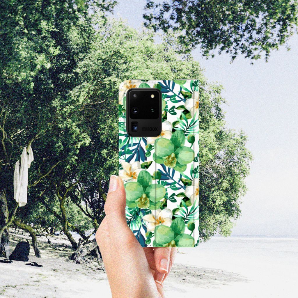 Ben je op zoek naar een uniek telefoonhoesje voor je Samsung Galaxy S20 Ultra? Dan ben je bij B2C Telecom aan het juiste adres! Speciaal voor jou hebben we dit prachtige Orchidee Groen design in onze collectie hoesjes opgenomen. Het design wordt bedrukt op een Smart Cover en heeft een vakje aan de binnenkant voor een pasje. Het fijne aan dit hoesje is dat je het als standaard neer kunt zetten. Hierdoor geniet je nog meer als je een filmpje aan het kijken bent op je telefoon. Het hoesje wordt afgesloten door magneten aan de binnenkant. Wil je dit design hoesje nog iets extra's geven? Voeg dan gratis je naam of een quote toe! Is dit design hoesje toch niet helemaal wat je zocht? Ontwerp dan zelf een hoesje in ons ontwerpprogramma.