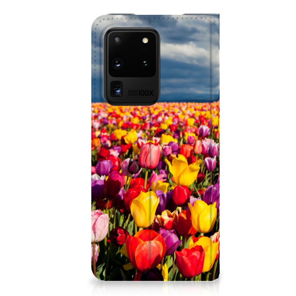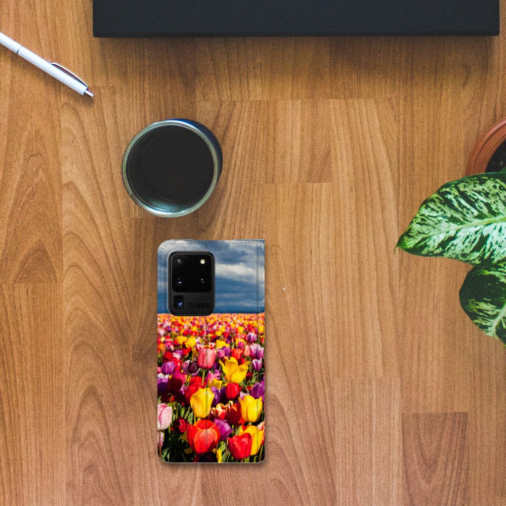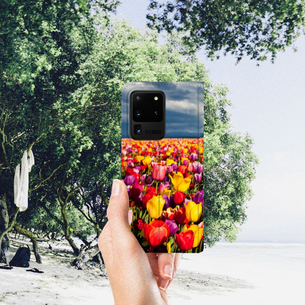 De tulp is een oer-Nederlandse bloem en heeft een lange geschiedenis. Deze Samsung Galaxy S20 Ultra Smart Cover met Tulpen ziet er bijzonder kleurrijk uit. Dit fleurige smartphone hoesje geeft een bijzondere bescherming van jouw apparaat. Tulpen zijn ideaal voor een kleurrijk begin van het tuinseizoen. Iedereen wordt er vrolijk van om te zien hoe deze bloemen het voorjaar kleur geven en het begin van de warmere tijd van het jaar aankondigen. Dan kan het toch niet anders of jij wordt heel erg blij van deze stand case met tulpen? Deze populaire stand case heeft ruimte voor een pasje of briefgeld aan de binnenzijde en wordt magnetisch afgesloten. De houder aan de binnenkant is van TPU en de case wordt aan alle zijden bedrukt met tulpen. Je kunt ook zelf een stand case maken met daarop jouw favoriete bloemen.
