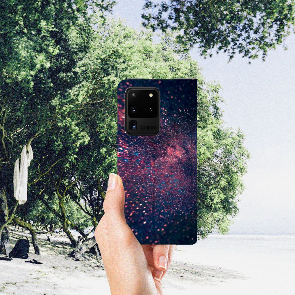 Je waant je in de zevende hemel met dit kunstzinnige, glitterachtige design hoesje met paarse en blauwe kleuren tegen een inktzwarte achtergrond. Het smartphone hoesje heeft ook een wat science fiction achtige allure. Met deze design Stars case zul je zeker opvallen. Als dit je bedoeling is, bestel dat snel dit waanzinnig mooie product voor je Samsung Galaxy S20 Ultra. Het telefoonhoesje is van alle gemakken voorzien en combineert een hele fraaie uitstraling met maximaal comfort. Bovendien is het gemaakt van zeer stevig en flexibel materiaal. Het unieke design, door B2C Telecom ontworpen, staat op een Stand Case. Deze case beschermt jouw telefoon aan alle kanten en beschikt over een 1 opbergvakje en een speciale standaard. Het hoesje wordt afgesloten met een magneet aan de binnenzijde. De houder aan de binnenzijde is van TPU.