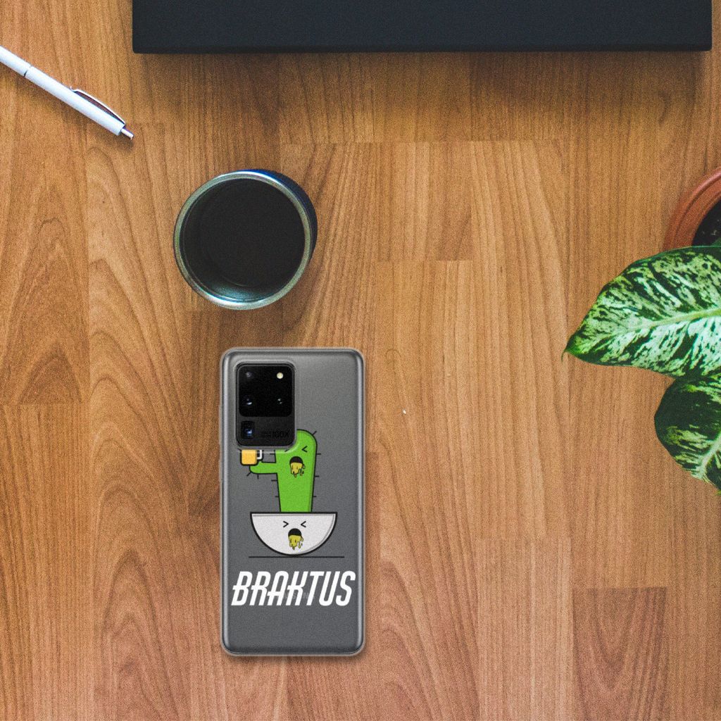 Voor de stappers onder ons hebben we dit hele grappige hoesje ontworpen. Deze Braktus case geeft perfect het gevoel weer als jij in de ochtend wakker wordt na een weekendje carnaval vieren: duf en waardeloos. Hopelijk was dit het wel waard en heb je een gezellige tijd gehad. Als aandenken zou je deze Telefoonhoesje met Naam met cactus print kunnen bestellen. Deze design case beschermt jouw Samsung Galaxy S20 Ultra vooral aan de achterkant en zijkanten, het scherm blijft deels onbeschermd. Verder heeft het telefoonhoesje opstaande randen, zodat het toestel bij een val de grond niet direct raakt. Een handig en flexibel hoesje, dat altijd in je broekzak past. Bescherming heb je met carnaval natuurlijk wel nodig, want tijdens het hossen kan de telefoon zomaar uit je outfit vallen. Bestel daarom deze TPU case, gemaakt van schokabsorberend materiaal. Alleen de bovenkant van de case wordt bedrukt en de randen blijven transparant.