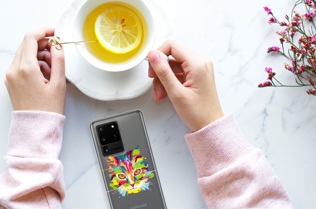 Ben je op zoek naar een uniek telefoonhoesje voor je Samsung Galaxy S20 Ultra? Dan ben je bij B2C Telecom aan het juiste adres! Speciaal voor jou hebben we dit prachtige Cat Color design in onze collectie hoesjes opgenomen. Het design wordt bedrukt op een Telefoonhoesje met Naam en is gemaakt van flexibel rubber. Het design wordt alleen aan de bovenkant van het hoesje bedrukt en de randen blijven transparant. Aan de zijkanten zijn uitsparingen gemaakt waardoor je met gemak alle knoppen en poorten kunt bedienen. Wij adviseren om dit hoesje in combinatie met een screenprotector te gebruiken voor een langere levensduur van je telefoon. Wil je dit design hoesje nog iets extra's geven? Voeg dan gratis je naam of een quote toe! Is dit design hoesje toch niet helemaal wat je zocht? Ontwerp dan zelf een hoesje in ons ontwerpprogramma.