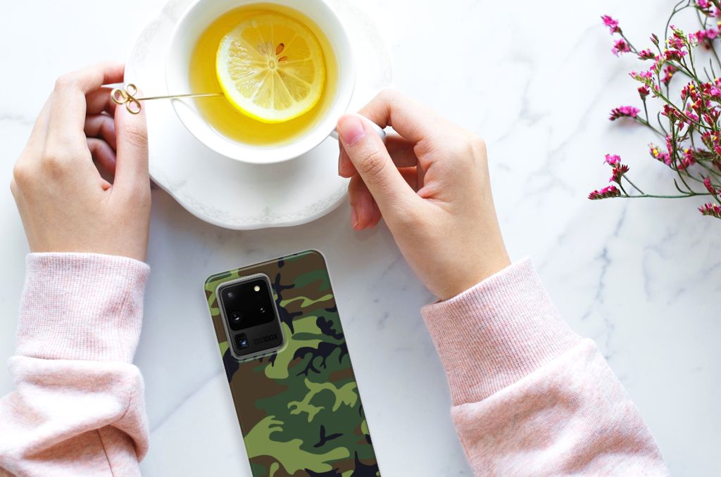 Voel je jezelf verbonden met het leger, dan zal deze Samsung Galaxy S20 Ultra TPU bumper je zeker bevallen. Het tpu hoesje beschikt namelijk over donkere camouflage kleuren. Deze worden vaak gebruikt door mensen die zich graag willen mengen in hun omgeving. Dit Army Dark hoesje is er dus voornamelijk in kleuren die in de natuur voorkomen, zodat je één wordt met je achtergrond. Beschermt de krijgsmacht volk en vaderland, dit hoesje in donkere camouflage kleuren zal jouw telefoon onder alle omstandigheden schadevrij houden. Met een hoesje in dit soort kleuren zal je niet zo snel opvallen. Het design staat op een TPU case. Dit hoesje wordt alleen aan de bovenkant bedrukt met donkere camouflage kleuren en is zeer flexibel. De randen van het hoesje blijven transparant.
