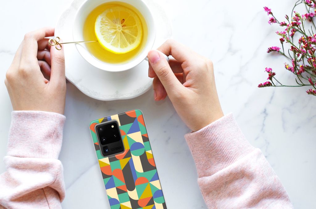 Voor de mensen die een beetje artistiek zijn, is er dit design hoesje met kleuren in een soort van Funky Retro stijl. Je krijgt er bijna een beetje een nostalgisch gevoel bij. De opdruk op dit design hoesje gaat nooit verloren en gaat dus net zo lang mee als dit gave patroon. De print wordt in ons eigen magazijn bedrukt, met zeer duurzame inkt. De case heeft voldoende uitsparingen, dus als je jouw Samsung Galaxy S20 Ultra hebt beloond met dit hoesje ga je een beetje terug in de tijd. Je hoeft het de telefoon nooit uit dit artistieke design hoesje te halen. Het unieke design, door B2C Telecom ontworpen, staat op een TPU bumper. Dit hoesje wordt alleen aan de bovenkant bedrukt en is zeer flexibel. De randen van het hoesje blijven transparant en worden niet bedrukt. Met dit hoesje past jouw telefoon altijd in je broekzak.