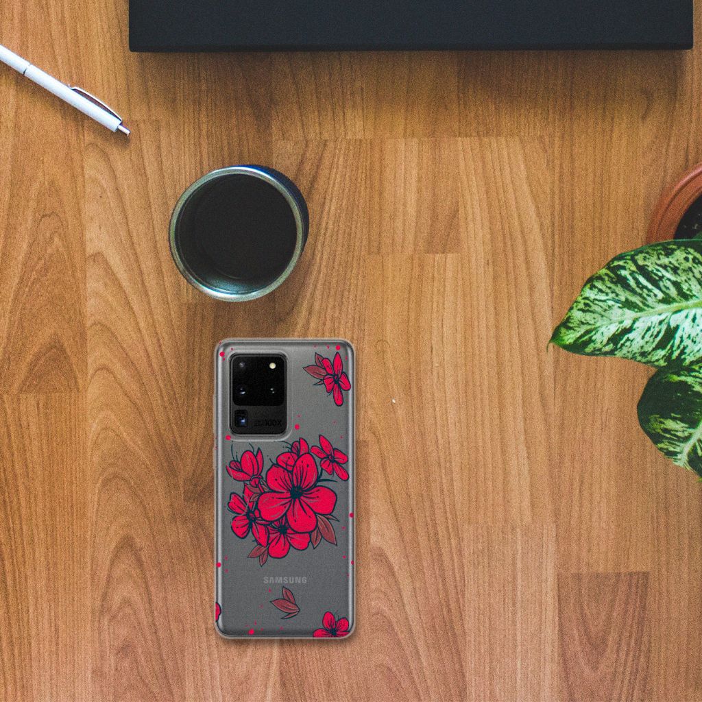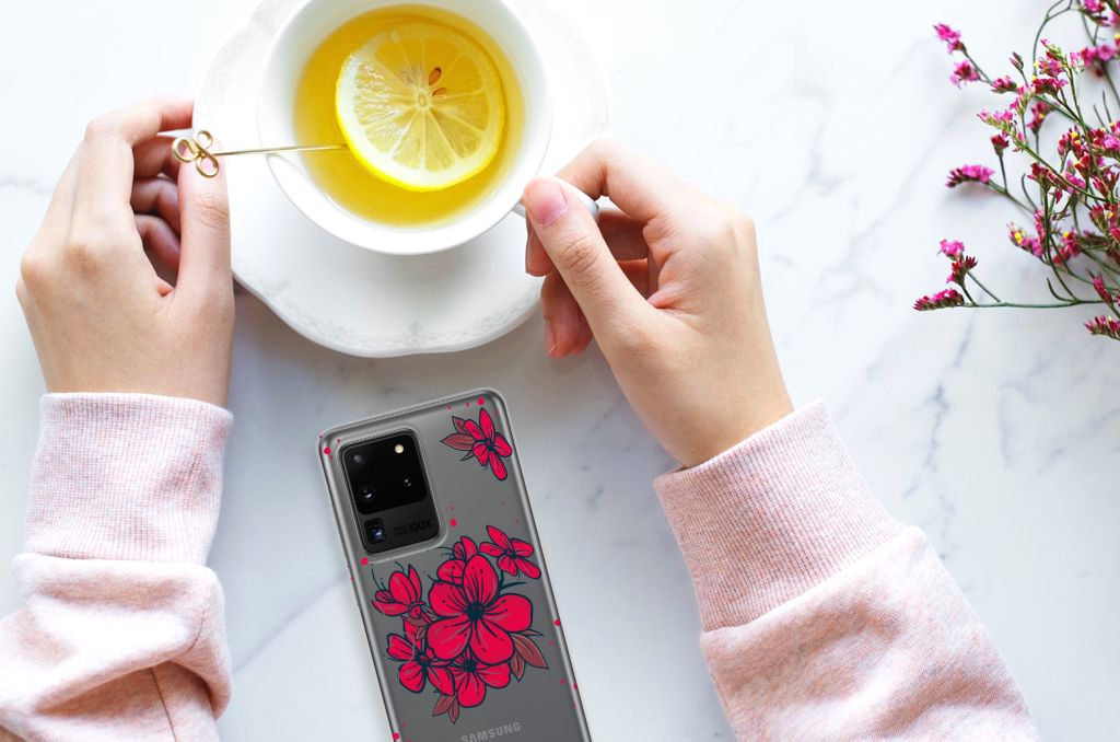 Wie denkt aan Japan, denkt al gauw aan die prachtige kersenbomen die in het begin van de lente in bloei staan en het land hullen in een prachtige zee van bloesem. Wie elke dag wil genieten van deze mooie kersenbloesem, kan natuurlijk ook kiezen voor dit mooie telefoonhoesje! Dankzij de witte achtergrond knallen de rode bloemetjes er mooi uit. Dit blossom red-design staat op een TPU Case voor de Samsung Galaxy S20 Ultra. TPU is een flexibel en onbreekbaar materiaal. Zo is je telefoon aan de achterkant en de randen heel goed beschermd. De case is aan de bovenkant bedrukt, de randen blijven transparant. Het TPU-hoesje is perfect te combineren met een screenprotector. Zo zijn je telefoon en je beeldscherm optimaal beschermd.