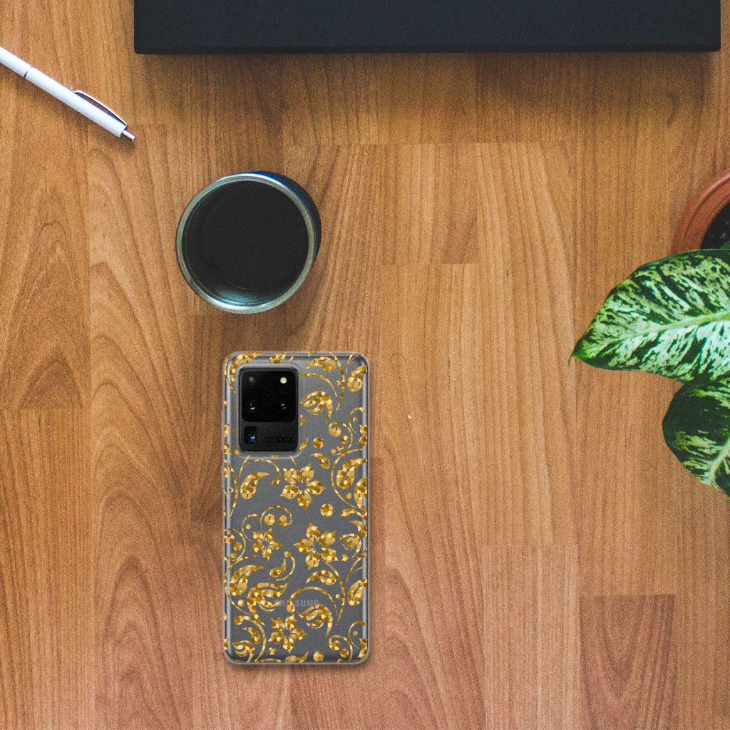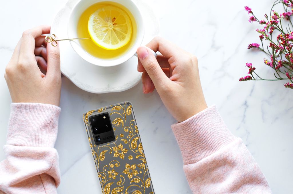 Ben je op zoek naar een uniek telefoonhoesje voor je Samsung Galaxy S20 Ultra? Dan ben je bij B2C Telecom aan het juiste adres! Speciaal voor jou hebben we dit prachtige Gouden Bloemen design in onze collectie hoesjes opgenomen. Het design wordt bedrukt op een TPU Case en is gemaakt van flexibel rubber. Het design wordt alleen aan de bovenkant van het hoesje bedrukt en de randen blijven transparant. Aan de zijkanten zijn uitsparingen gemaakt waardoor je met gemak alle knoppen en poorten kunt bedienen. Wij adviseren om dit hoesje in combinatie met een screenprotector te gebruiken voor een langere levensduur van je telefoon. Wil je dit design hoesje nog iets extra's geven? Voeg dan gratis je naam of een quote toe! Is dit design hoesje toch niet helemaal wat je zocht? Ontwerp dan zelf een hoesje in ons ontwerpprogramma.