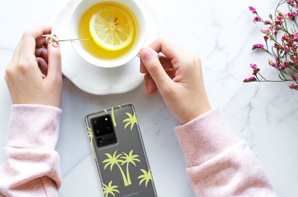 Je krijgt direct een vakantiegevoel als je kiest voor een Samsung Galaxy S20 Ultra TPU Case met opdruk van lichtgroene Palmtrees. Sommige mensen hebben ook een palmboom in hun tuin staan, wij kunnen er meerdere op een tpu case zetten. Jouw smartphone is op en top beschermd met een tpu case met lichtgroene palmbomen tegen een witgrijze achtergrond en ziet er schitterend uit. Het is heel verstandig je telefoon te beschermen met een tpu hoesje met palmbomen tegen een witgrijze achtergrond. De TPU case met print van lichtgroene palmbomen beschermt jouw telefoon voornamelijk aan de achterzijde. De randen van de case worden niet bedrukt met lichtgroene palmbomen. TPU is zeer flexibel.