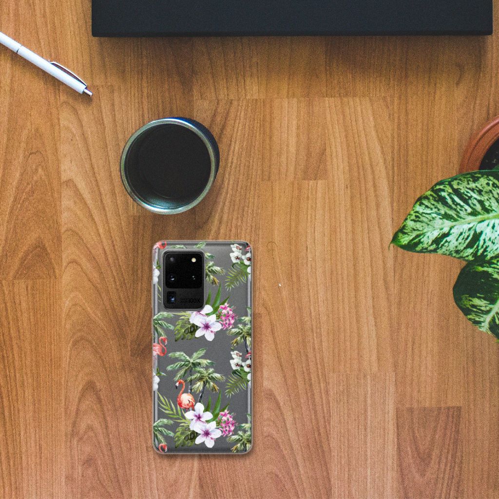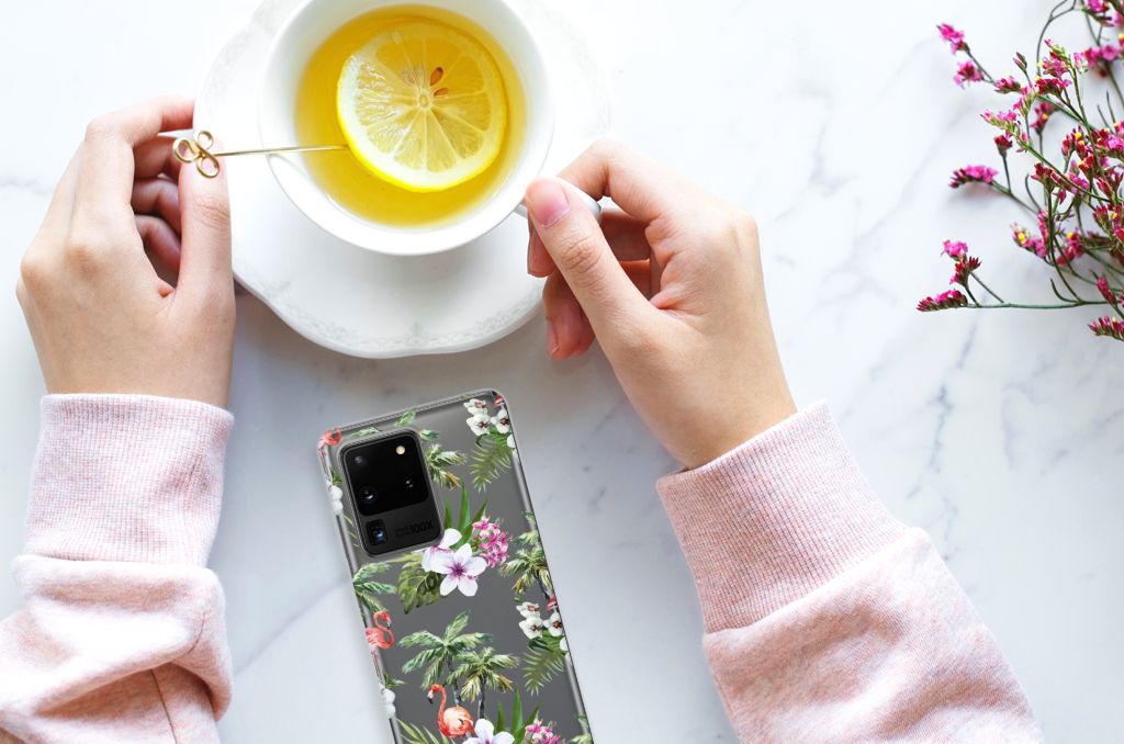 Een Samsung Galaxy S20 Ultra TPU Hoesje met Flamingo Palms is in vele opzichten bijzonder. De rode flamingo op het hoesje kent zijn oorsprong in het Caraïbische gebied. Stel dat je in deze regio vakantie aan het vieren bent, dan val je zonder meer op met dit hoesje met flamingo’s en palmbomen. Deze tpu case beschermt je telefoon met name aan de achterkant en de zijkanten. Deze tpu case met flamingo’s en palmbomen is op maat gemaakt voor jouw smartphone en ligt altijd goed in je hand. De TPU case met flamingo’s en palmbomen en is ook zeer flexibel. De zijkanten van case blijven transparant.