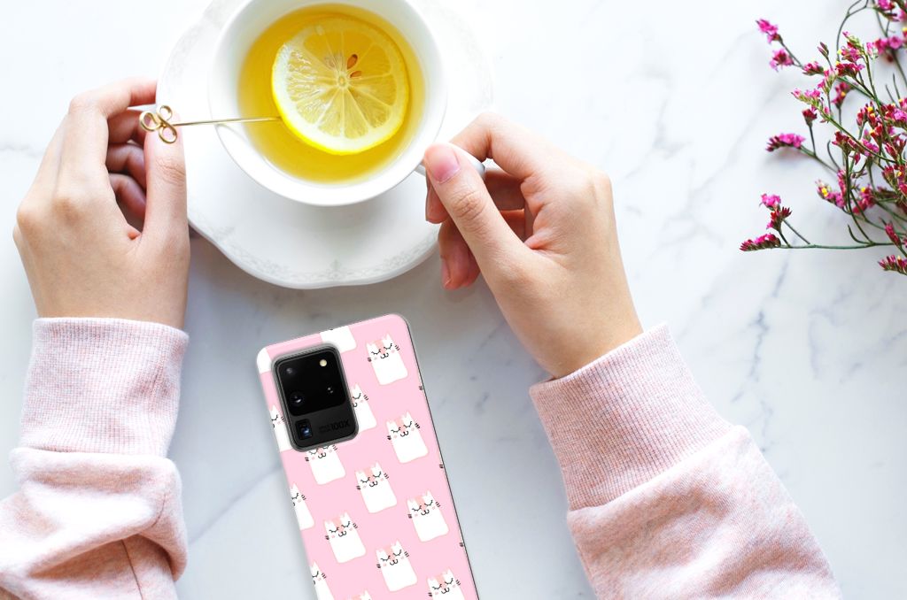 Heb je zelf een kat, dan zou je een hoesje kunnen ontwerpen met daarop je favoriete huisdier. Maar je zou ook kunnen kiezen voor een Samsung Galaxy S20 Ultra TPU Hoesje met Sleeping Cats design. Na een jaar of tien kan een kat als bejaard worden beschouwd, maar dat geldt zeker niet voor dit smartphone hoesje. Dat is namelijk niet kapot te krijgen. De mooie roze kleur zal altijd scherp blijven en de slapende katten op dit hoesje zullen je altijd liefdevol aan blijven staren. Deze stevige case is niet alleen schattig, maar beschermt jouw telefoon ook zeer goed. Net als een kat zul jij spinnen bij de aanblik van dit telefoonhoesje. De TPU case met slapende katten beschermt je telefoon zeer goed. Dit hoesje wordt alleen aan de bovenkant bedrukt en is zeer flexibel. De randen van het hoesje blijven transparant.