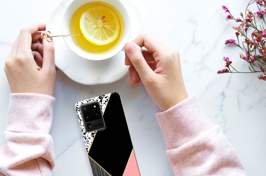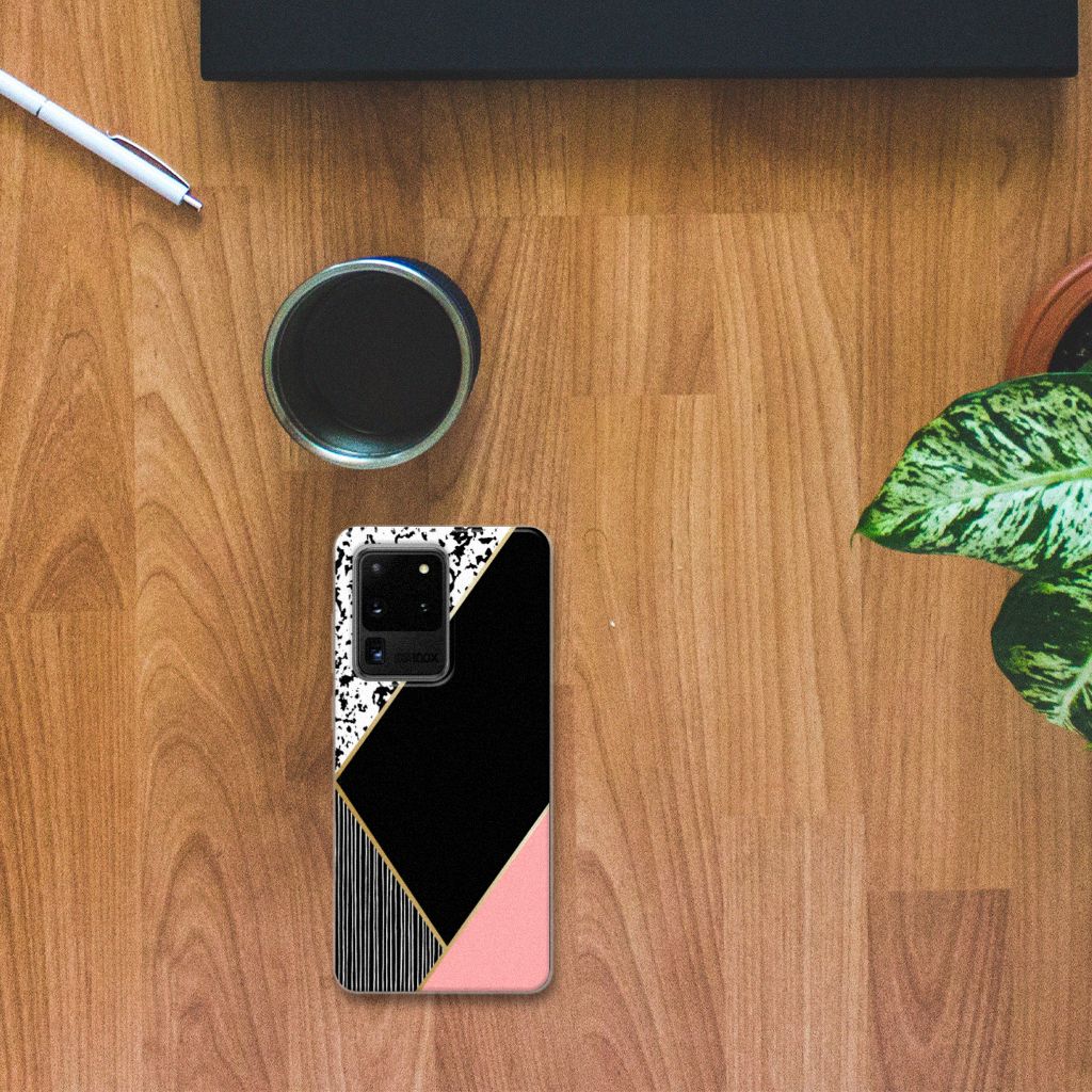 TPU Hoesje Samsung Galaxy S20 Ultra Zwart Roze Vormen Design