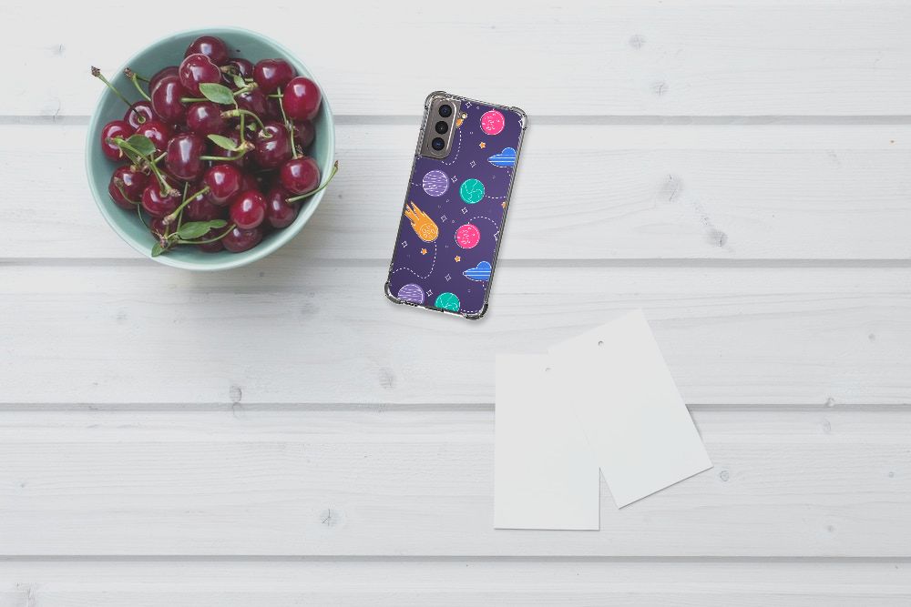 Ben je op zoek naar een uniek telefoonhoesje voor je Samsung Galaxy S21? Dan ben je bij B2C Telecom aan het juiste adres! Speciaal voor jou hebben we dit prachtige Space design in onze collectie hoesjes opgenomen. Het design wordt bedrukt op een Anti Shock Bumper Case en is gemaakt van flexibel rubber. Het hoesje is perfect voor de actieve smartphonegebruiker door de opstaande randen/hoeken. Denk aan mensen die veel sporten, reizen of wandelen en net iets meer zekerheid willen als het op hun geliefde telefoon aankomt. Het design wordt alleen aan de bovenkant van het hoesje bedrukt en de randen blijven transparant. Aan de zijkanten zijn uitsparingen gemaakt waardoor je met gemak alle knoppen en poorten kunt bedienen. Wij adviseren om dit hoesje in combinatie met een screenprotector te gebruiken voor een langere levensduur van je telefoon. Wil je dit hoesje nog iets extra's geven? Voeg dan gratis je naam of een quote toe! Is dit design hoesje toch niet helemaal wat je zocht? Ontwerp dan zelf een hoesje in ons ontwerpprogramma.