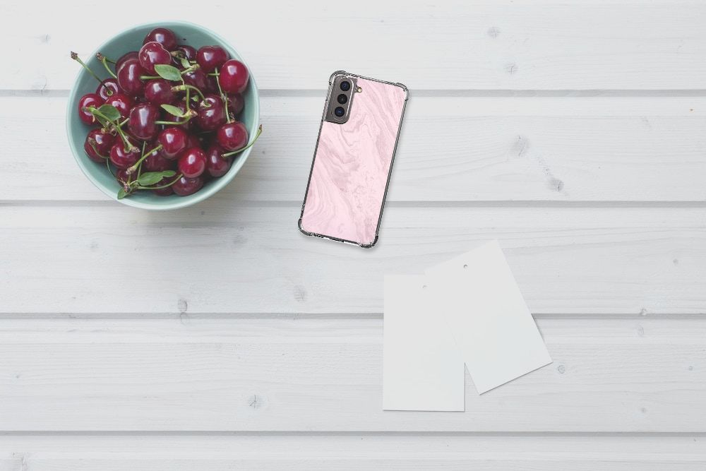 Ben je op zoek naar een uniek telefoonhoesje voor je Samsung Galaxy S21? Dan ben je bij B2C Telecom aan het juiste adres! Speciaal voor jou hebben we dit prachtige Marble Pink design in onze collectie hoesjes opgenomen. Het design wordt bedrukt op een Anti-Shock Hoesje en is gemaakt van flexibel rubber. Het hoesje is perfect voor de actieve smartphonegebruiker door de opstaande randen/hoeken. Denk aan mensen die veel sporten, reizen of wandelen en net iets meer zekerheid willen als het op hun geliefde telefoon aankomt. Het design wordt alleen aan de bovenkant van het hoesje bedrukt en de randen blijven transparant. Aan de zijkanten zijn uitsparingen gemaakt waardoor je met gemak alle knoppen en poorten kunt bedienen. Wij adviseren om dit hoesje in combinatie met een screenprotector te gebruiken voor een langere levensduur van je telefoon. Wil je dit hoesje nog iets extra's geven? Voeg dan gratis je naam of een quote toe! Is dit design hoesje toch niet helemaal wat je zocht? Ontwerp dan zelf een hoesje in ons ontwerpprogramma.