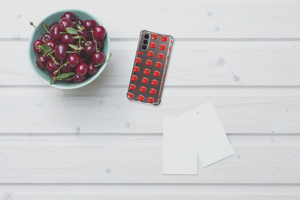 Ben je op zoek naar een uniek telefoonhoesje voor je Samsung Galaxy S21? Dan ben je bij B2C Telecom aan het juiste adres! Speciaal voor jou hebben we dit prachtige Paprika Red design in onze collectie hoesjes opgenomen. Het design wordt bedrukt op een Beschermhoes en is gemaakt van flexibel rubber. Het hoesje is perfect voor de actieve smartphonegebruiker door de opstaande randen/hoeken. Denk aan mensen die veel sporten, reizen of wandelen en net iets meer zekerheid willen als het op hun geliefde telefoon aankomt. Het design wordt alleen aan de bovenkant van het hoesje bedrukt en de randen blijven transparant. Aan de zijkanten zijn uitsparingen gemaakt waardoor je met gemak alle knoppen en poorten kunt bedienen. Wij adviseren om dit hoesje in combinatie met een screenprotector te gebruiken voor een langere levensduur van je telefoon. Wil je dit hoesje nog iets extra's geven? Voeg dan gratis je naam of een quote toe! Is dit design hoesje toch niet helemaal wat je zocht? Ontwerp dan zelf een hoesje in ons ontwerpprogramma.
