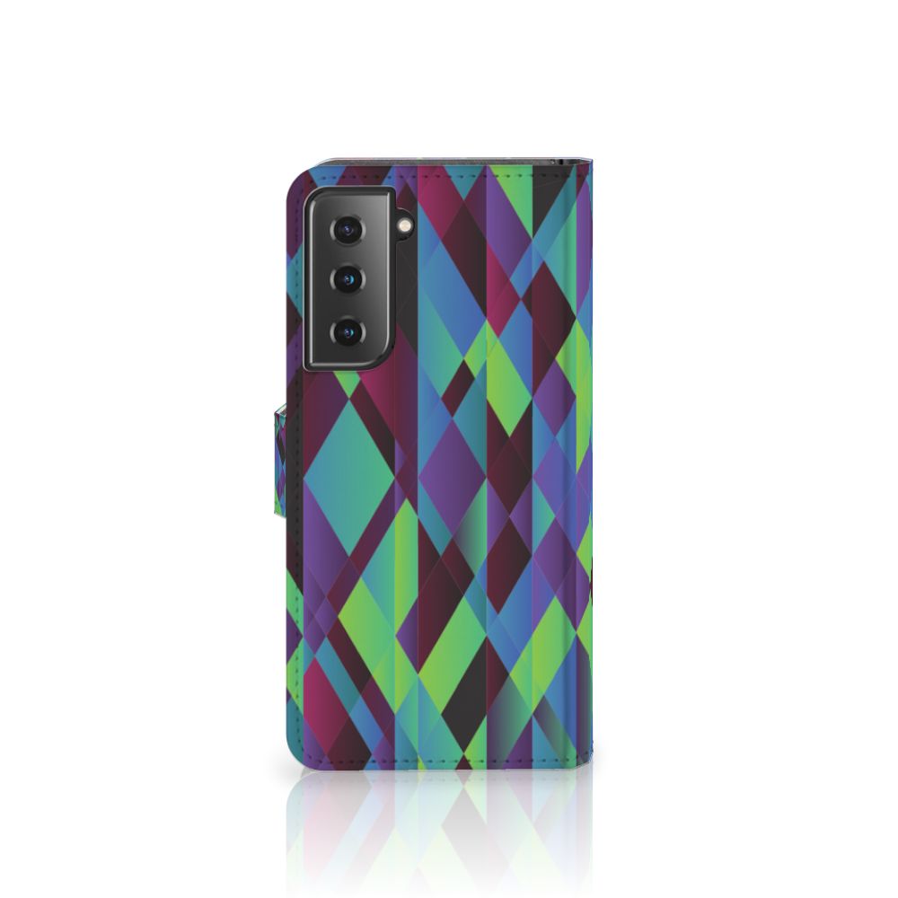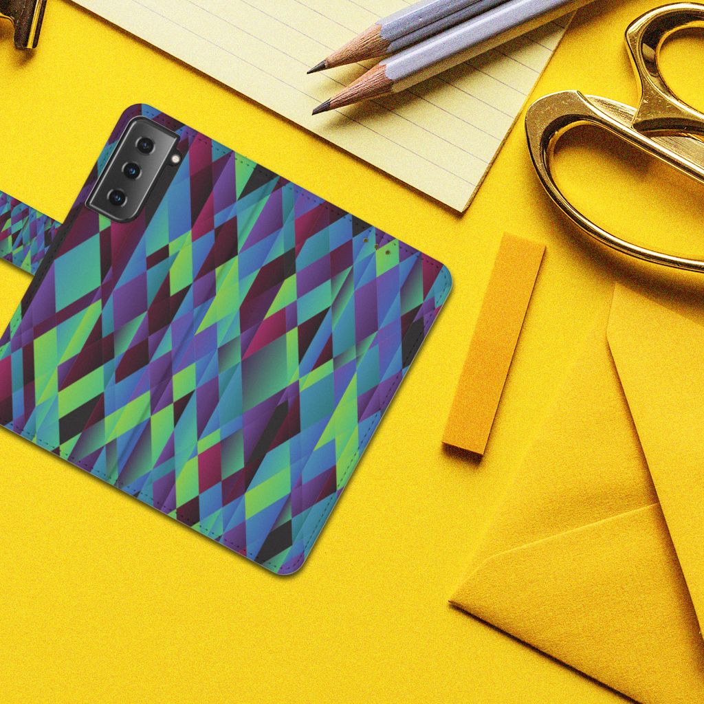 Dit kleurrijke design hoesje is een zeer opvallende bescherming voor jouw smartphone. Mensen zien je van ver aankomen wandelen als je dit hoesje om je telefoon hebt zitten. De case beschikt over ongelooflijk veel kleuren: groen, blauw, paars, blauw, bruin en ga zo maar door. Ze hebben gemeenschappelijk dat ze allemaal zeer fel zijn en op een zeer kunstzinnige manier door elkaar zijn gebruikt. Jouw Samsung Galaxy S21 krijgt zeker kleur als je dit hoesje koopt. Het ziet er zeer hip en trendy uit. Zeker een case waar met bewondering naar gekeken zal worden. Het design Abstract Green Blue staat op een boekhoesje. Dit Book Case beschermt jouw telefoon aan alle zijden en beschikt over verschillende opbergvakjes voor pasjes en briefgeld. De case sluit perfect af met het lipje aan de buitenkant. De houder aan de binnenzijde is van TPU. Alle zijden worden bedrukt.