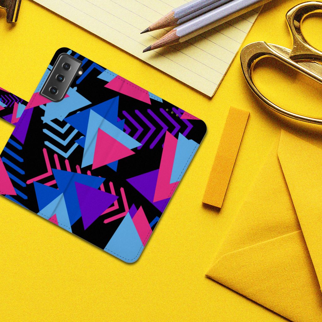 Dit fraaie hoesje met het design Funky Triangle is alles behalve eenvoudig en sober. Dat komt goed uit, want je hebt natuurlijk ook geen doorsnee telefoon gekocht. Mocht je dat wel hebben gedaan, dan wordt hij meteen speciaal als je een Samsung Galaxy S21 Book Case koopt voor een spotprijsje. Een ding is zeker: opvallen ga je beslist met dit hoesje met paarse, roze en blauwe driehoeken. Jij zult in je element zijn met dit design hoesje met paarse, roze en blauwe driehoeken, omdat het er schitterend uitziet en jouw telefoon perfect beschermt. Het smartphonehoesje beschermt jouw telefoon aan alle zijden en beschikt over verschillende houders voor pasjes en briefgeld. De case sluit perfect af met een lipje aan de buitenkant. De houder aan de binnenzijde is van TPU. Alle zijden van het hoesje worden bedrukt, inclusief het lipje. De paarse, roze en blauwe driehoeken maken de case helemaal af.