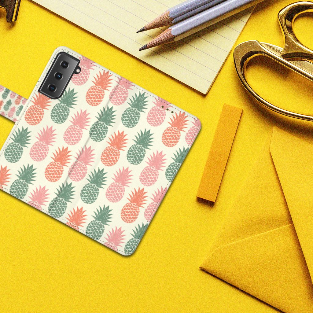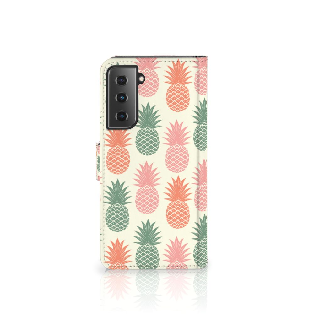 Samsung Galaxy S21 Bookcover met pasjes Ananas