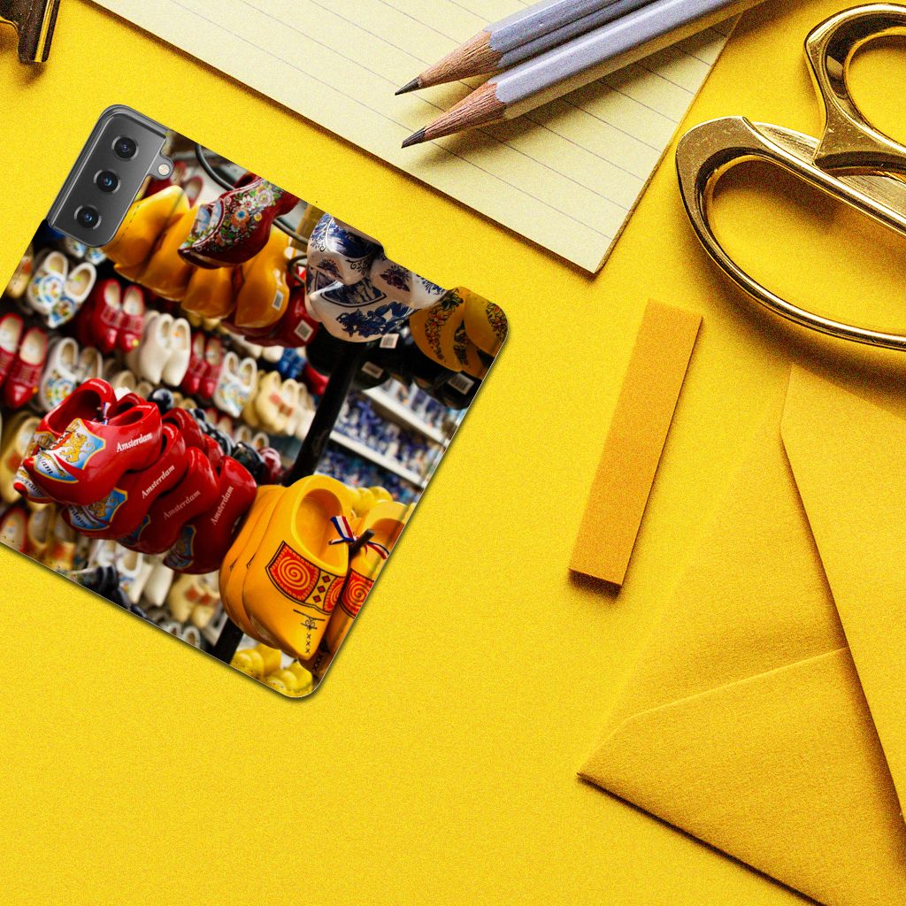 Een Samsung Galaxy S21 Book Cover met klompen is een schitterende versiering voor jouw smartphone. Traditioneel worden klompen in een gele kleur gemaakt, soms met eenvoudige versieringen die van plaats tot plaats verschillen. Deze mooie stand case met verschillende soorten klompen in verschillende kleuren is zo’n beetje de veiligste case die er bestaat. Het hoesje met klompen zorgt voor een volledige bescherming van je smartphone en wordt aan alle zijden bedrukt. De case heeft een magneet aan de binnenzijde, wat zorgt voor een perfecte sluiting. Verder is de houder aan de binnenzijde van TPU. Met een stand hoesje met klompen in verschillende kleuren op alle zijden blijft jouw gsm volledig in tact. Sta je liever zelf met je eigen mooie klompen op een hoesje? Ontwerp dan zelf een stand case met je eigen foto’s en teksten! Behalve klompen kun je zelfs je gehele boerderij op de stand case zetten.