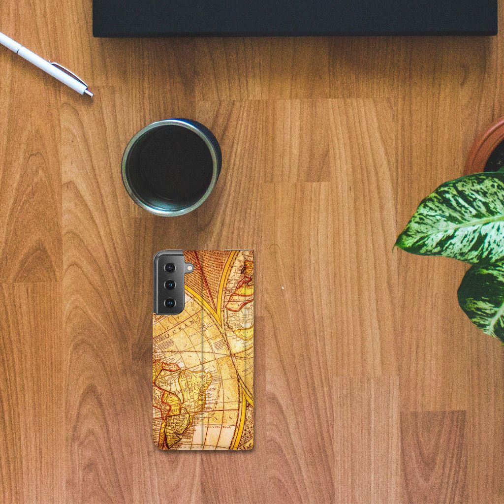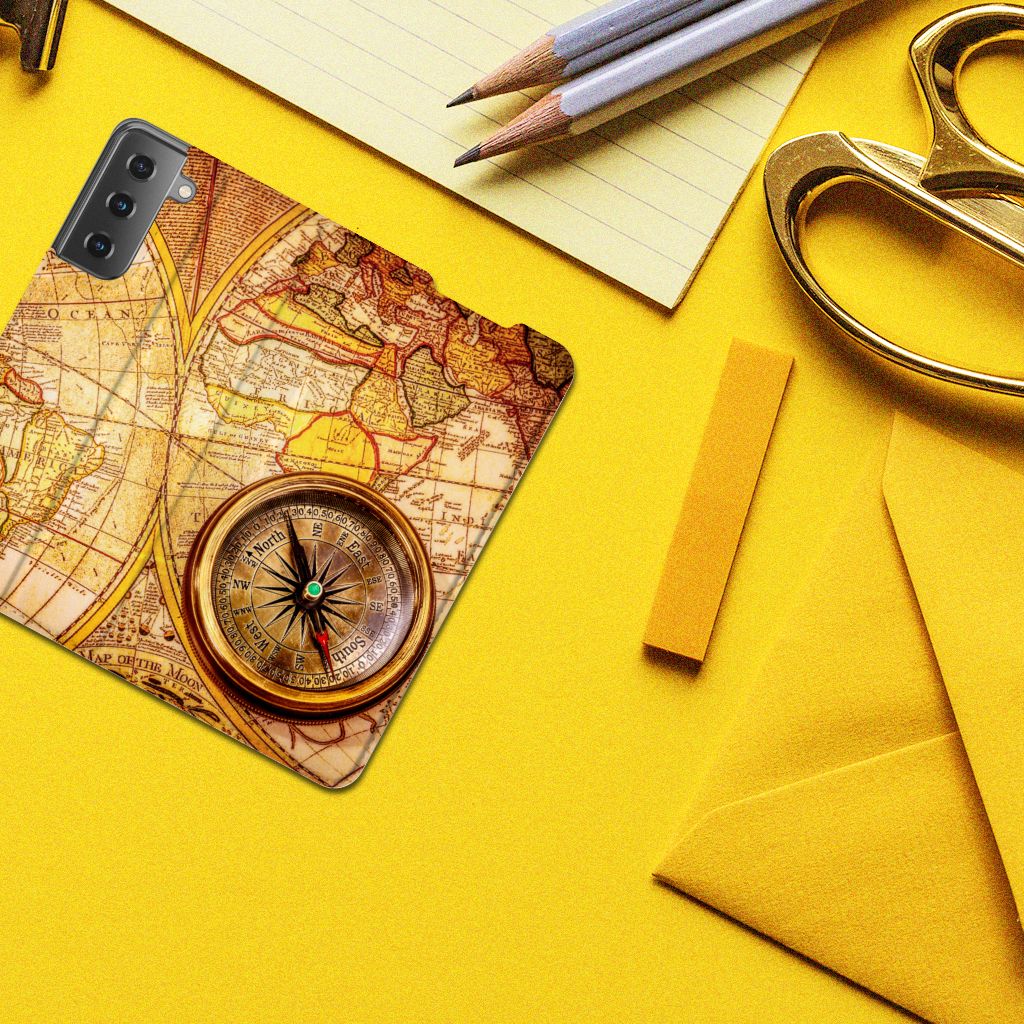 Met deze Samsung Galaxy S21 Book Cover met opdruk van een Kompas kun jij veilig elke richting op die je wilt, zonder dat je smartphone schade oploopt. Erg handig. Een kompas werkt overigens met magnetisme. Dat betekent dat een kompas af gaat wijken als die te dicht in de buurt van metaal of een andere magnetische bron komt. Deze stand case met kompas heeft ook een magneet aan de binnenzijde die ervoor zorgt dat de case niet zomaar open kan klappen. Onze stand cases met kompas bieden de allerbeste bescherming en zijn heel praktisch, wat blijkt uit onder meer het vakje aan de binnenkant en de standaard. Het kompas komt ook op alle zijden van de case te staan. Op deze stand case van leer en TPU (houder aan de binnenkant) kun je trouwens ook in no time zelf foto’s en teksten zetten.