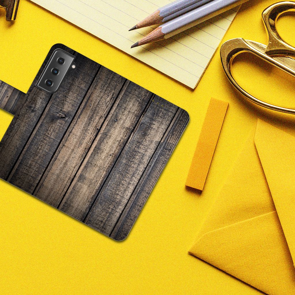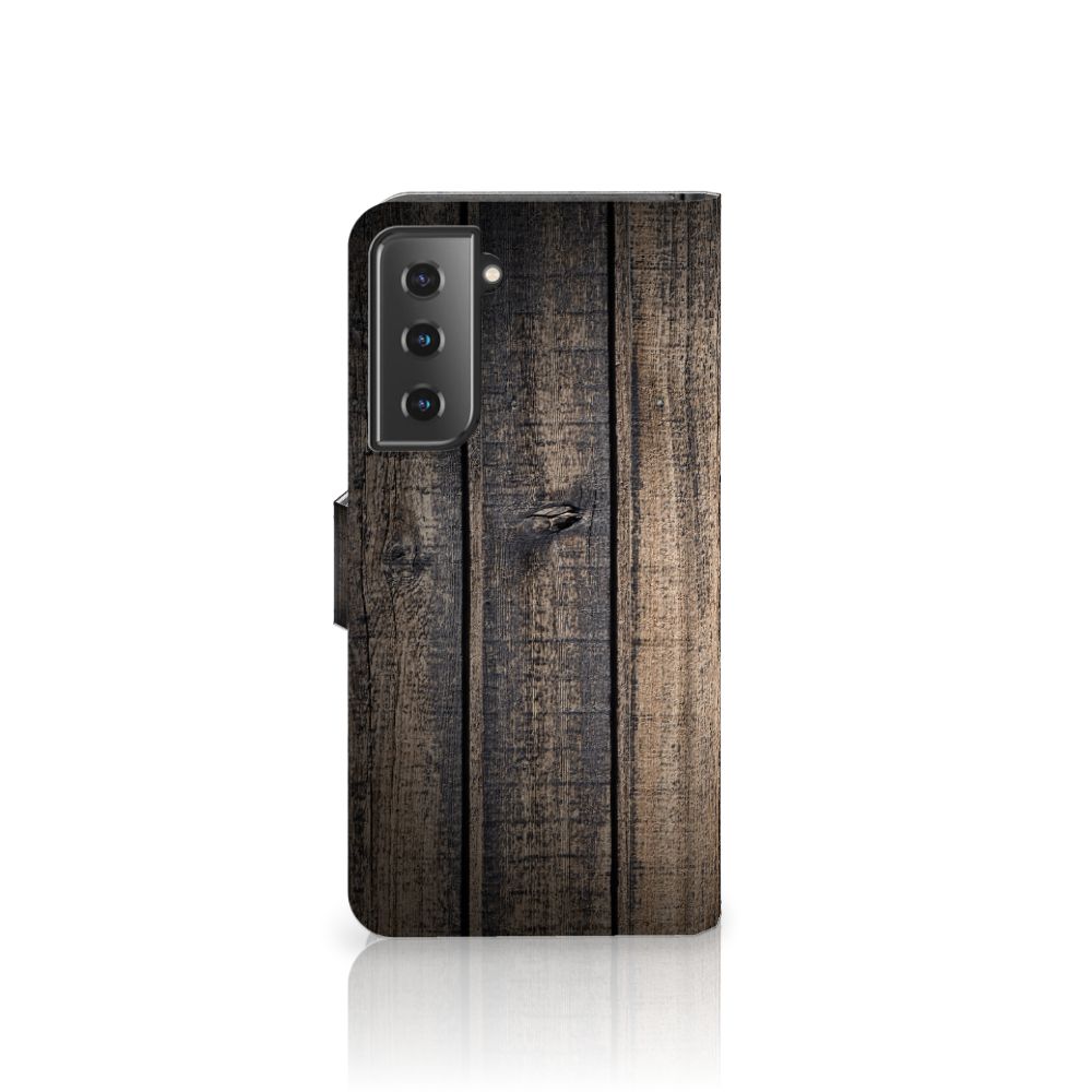 Samsung Galaxy S21 Bookstyle Case met ruimte voor 3 pasjes Steigerhout