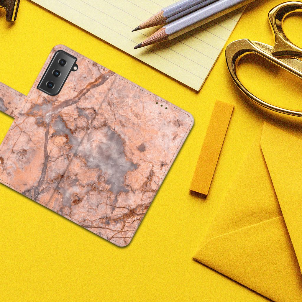 Samsung Galaxy S21 Bookcase met pasjes Marmer Oranje
