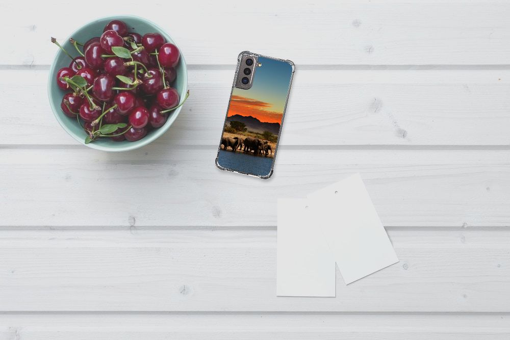 Ben je op zoek naar een uniek telefoonhoesje voor je Samsung Galaxy S21? Dan ben je bij B2C Telecom aan het juiste adres! Speciaal voor jou hebben we dit prachtige Olifanten in onze collectie hoesjes opgenomen. Het design wordt bedrukt op een Case Anti-shock en is gemaakt van flexibel rubber. Het hoesje is perfect voor de actieve smartphonegebruiker door de opstaande randen/hoeken. Denk aan mensen die veel sporten, reizen of wandelen en net iets meer zekerheid willen als het op hun geliefde telefoon aankomt. Het design wordt alleen aan de bovenkant van het hoesje bedrukt en de randen blijven transparant. Aan de zijkanten zijn uitsparingen gemaakt waardoor je met gemak alle knoppen en poorten kunt bedienen. Wij adviseren om dit hoesje in combinatie met een screenprotector te gebruiken voor een langere levensduur van je telefoon. Wil je dit hoesje nog iets extra's geven? Voeg dan gratis je naam of een quote toe! Is dit design hoesje toch niet helemaal wat je zocht? Ontwerp dan zelf een hoesje in ons ontwerpprogramma.