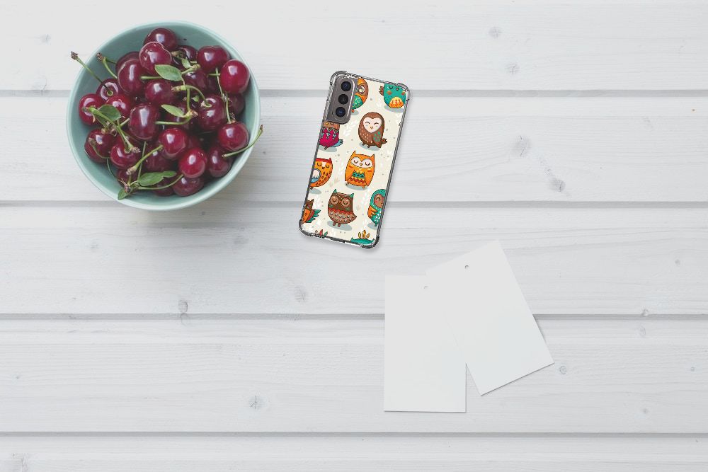 Ben je op zoek naar een uniek telefoonhoesje voor je Samsung Galaxy S21? Dan ben je bij B2C Telecom aan het juiste adres! Speciaal voor jou hebben we dit prachtige Vrolijke Uilen design in onze collectie hoesjes opgenomen. Het design wordt bedrukt op een Case Anti-shock en is gemaakt van flexibel rubber. Het hoesje is perfect voor de actieve smartphonegebruiker door de opstaande randen/hoeken. Denk aan mensen die veel sporten, reizen of wandelen en net iets meer zekerheid willen als het op hun geliefde telefoon aankomt. Het design wordt alleen aan de bovenkant van het hoesje bedrukt en de randen blijven transparant. Aan de zijkanten zijn uitsparingen gemaakt waardoor je met gemak alle knoppen en poorten kunt bedienen. Wij adviseren om dit hoesje in combinatie met een screenprotector te gebruiken voor een langere levensduur van je telefoon. Wil je dit hoesje nog iets extra's geven? Voeg dan gratis je naam of een quote toe! Is dit design hoesje toch niet helemaal wat je zocht? Ontwerp dan zelf een hoesje in ons ontwerpprogramma.