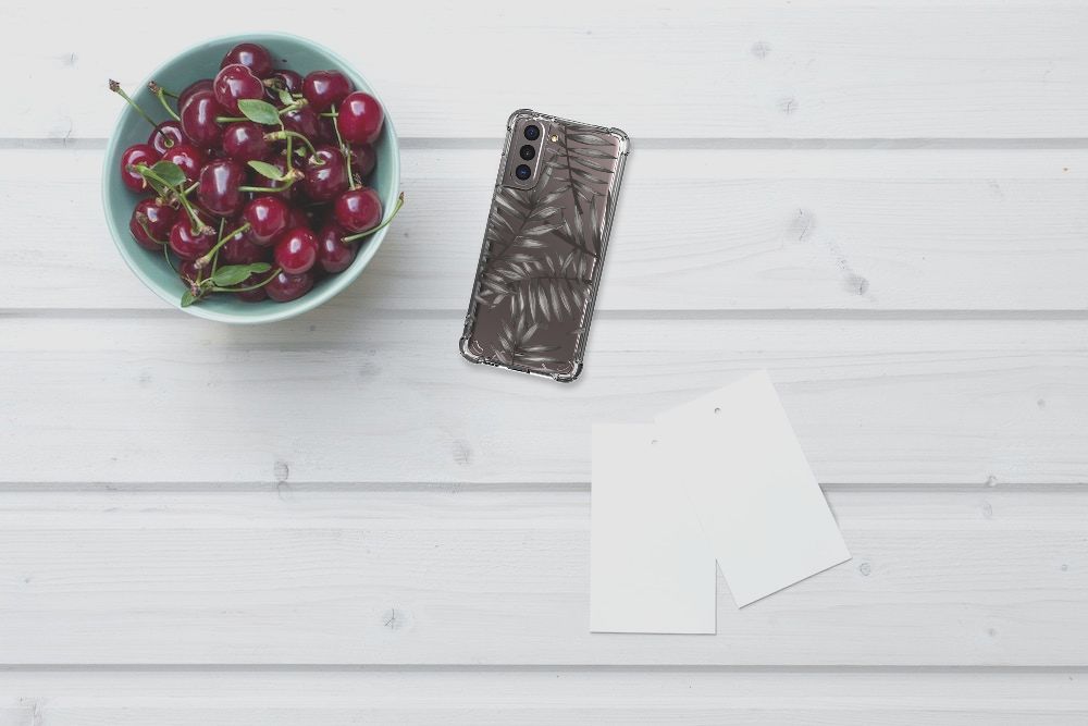 Ben je op zoek naar een uniek telefoonhoesje voor je Samsung Galaxy S21? Dan ben je bij B2C Telecom aan het juiste adres! Speciaal voor jou hebben we dit prachtige Leaves Grey design in onze collectie hoesjes opgenomen. Het design wordt bedrukt op een Case en is gemaakt van flexibel rubber. Het hoesje is perfect voor de actieve smartphonegebruiker door de opstaande randen/hoeken. Denk aan mensen die veel sporten, reizen of wandelen en net iets meer zekerheid willen als het op hun geliefde telefoon aankomt. Het design wordt alleen aan de bovenkant van het hoesje bedrukt en de randen blijven transparant. Aan de zijkanten zijn uitsparingen gemaakt waardoor je met gemak alle knoppen en poorten kunt bedienen. Wij adviseren om dit hoesje in combinatie met een screenprotector te gebruiken voor een langere levensduur van je telefoon. Wil je dit hoesje nog iets extra's geven? Voeg dan gratis je naam of een quote toe! Is dit design hoesje toch niet helemaal wat je zocht? Ontwerp dan zelf een hoesje in ons ontwerpprogramma.