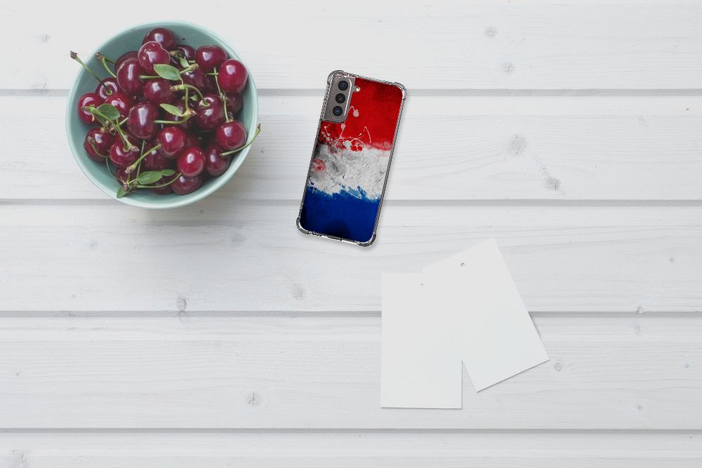Ben je op zoek naar een uniek telefoonhoesje voor je Samsung Galaxy S21? Dan ben je bij B2C Telecom aan het juiste adres! Speciaal voor jou hebben we dit prachtige Nederlandse Vlag design in onze collectie hoesjes opgenomen. Het design wordt bedrukt op een Cover Case en is gemaakt van flexibel rubber. Het hoesje is perfect voor de actieve smartphonegebruiker door de opstaande randen/hoeken. Denk aan mensen die veel sporten, reizen of wandelen en net iets meer zekerheid willen als het op hun geliefde telefoon aankomt. Het design wordt alleen aan de bovenkant van het hoesje bedrukt en de randen blijven transparant. Aan de zijkanten zijn uitsparingen gemaakt waardoor je met gemak alle knoppen en poorten kunt bedienen. Wij adviseren om dit hoesje in combinatie met een screenprotector te gebruiken voor een langere levensduur van je telefoon. Wil je dit hoesje nog iets extra's geven? Voeg dan gratis je naam of een quote toe! Is dit design hoesje toch niet helemaal wat je zocht? Ontwerp dan zelf een hoesje in ons ontwerpprogramma.