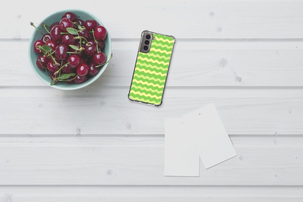 Ben je op zoek naar een uniek telefoonhoesje voor je Samsung Galaxy S21? Dan ben je bij B2C Telecom aan het juiste adres! Speciaal voor jou hebben we dit prachtige Waves Green design in onze collectie hoesjes opgenomen. Het design wordt bedrukt op een Doorzichtige Silicone Hoesje en is gemaakt van flexibel rubber. Het hoesje is perfect voor de actieve smartphonegebruiker door de opstaande randen/hoeken. Denk aan mensen die veel sporten, reizen of wandelen en net iets meer zekerheid willen als het op hun geliefde telefoon aankomt. Het design wordt alleen aan de bovenkant van het hoesje bedrukt en de randen blijven transparant. Aan de zijkanten zijn uitsparingen gemaakt waardoor je met gemak alle knoppen en poorten kunt bedienen. Wij adviseren om dit hoesje in combinatie met een screenprotector te gebruiken voor een langere levensduur van je telefoon. Wil je dit hoesje nog iets extra's geven? Voeg dan gratis je naam of een quote toe! Is dit design hoesje toch niet helemaal wat je zocht? Ontwerp dan zelf een hoesje in ons ontwerpprogramma.