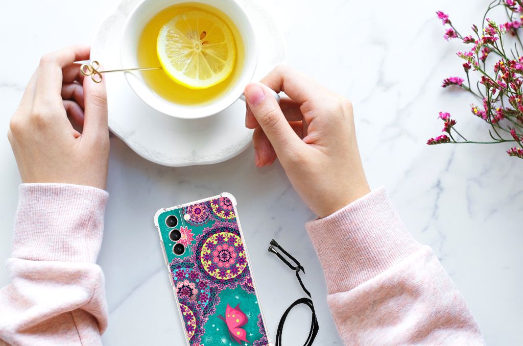 Ben je op zoek naar een uniek telefoonhoesje voor je Samsung Galaxy S21 FE? Dan ben je bij B2C Telecom aan het juiste adres! Speciaal voor jou hebben we dit prachtige Cirkels en Vlinders design in onze collectie hoesjes opgenomen. Het design wordt bedrukt op een Back Cover en is gemaakt van flexibel rubber. Het hoesje is perfect voor de actieve smartphonegebruiker door de opstaande randen/hoeken. Denk aan mensen die veel sporten, reizen of wandelen en net iets meer zekerheid willen als het op hun geliefde telefoon aankomt. Het design wordt alleen aan de bovenkant van het hoesje bedrukt en de randen blijven transparant. Aan de zijkanten zijn uitsparingen gemaakt waardoor je met gemak alle knoppen en poorten kunt bedienen. Wij adviseren om dit hoesje in combinatie met een screenprotector te gebruiken voor een langere levensduur van je telefoon. Wil je dit hoesje nog iets extra's geven? Voeg dan gratis je naam of een quote toe! Is dit design hoesje toch niet helemaal wat je zocht? Ontwerp dan zelf een hoesje in ons ontwerpprogramma.
