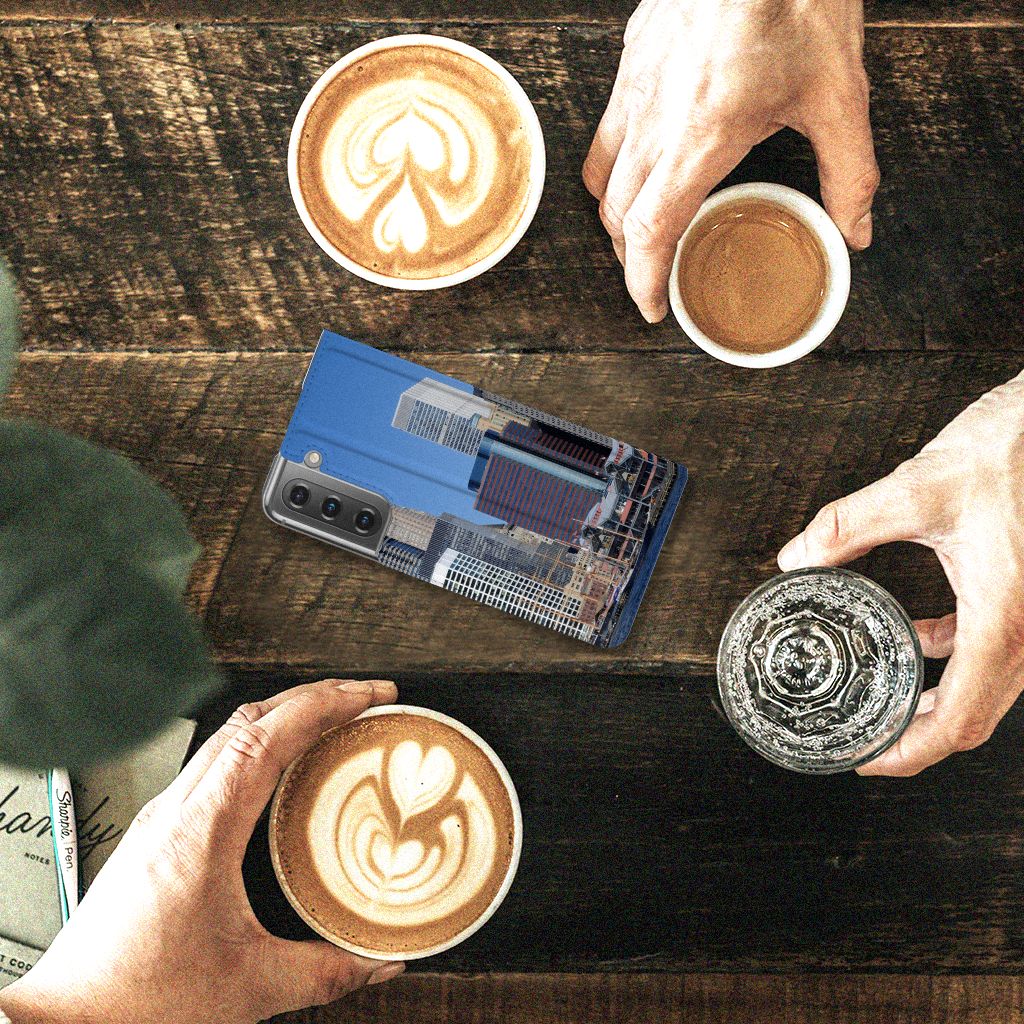 Natuurlijk mag een hoesje met de print van New York niet in onze collectie design hoesjes ontbreken. New York is immers de grootste stad van de Verenigde Staten van Amerika en een van de belangrijkste wereldsteden. Deze stad, ook wel New York City of NYC genoemd, moet je gewoon minstens eenmaal in je leven bezocht hebben. Doe je dat, dan gaat je telefoon natuurlijk mee en deze bescherm je met deze leuke Samsung Galaxy S21 FE Book Cover met print van New York. Je pasje kun je in het opbergvakje aan de binnenzijde stoppen en de case sluit perfect af dankzij de magneet. The City That Never Sleeps, zo wordt New York ook wel genoemd. De print op deze stand case met print van New York, die een houder heeft van TPU, oogt zeer stijlvol.