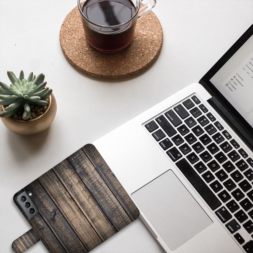 Samsung Galaxy S21 FE Bookstyle Case met ruimte voor 3 pasjes Steigerhout