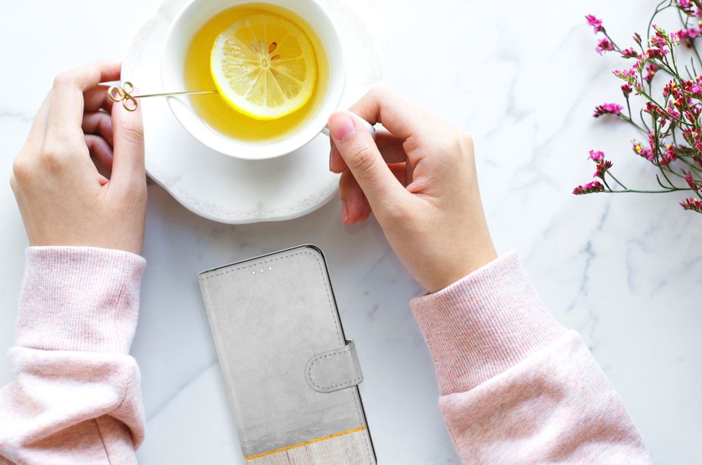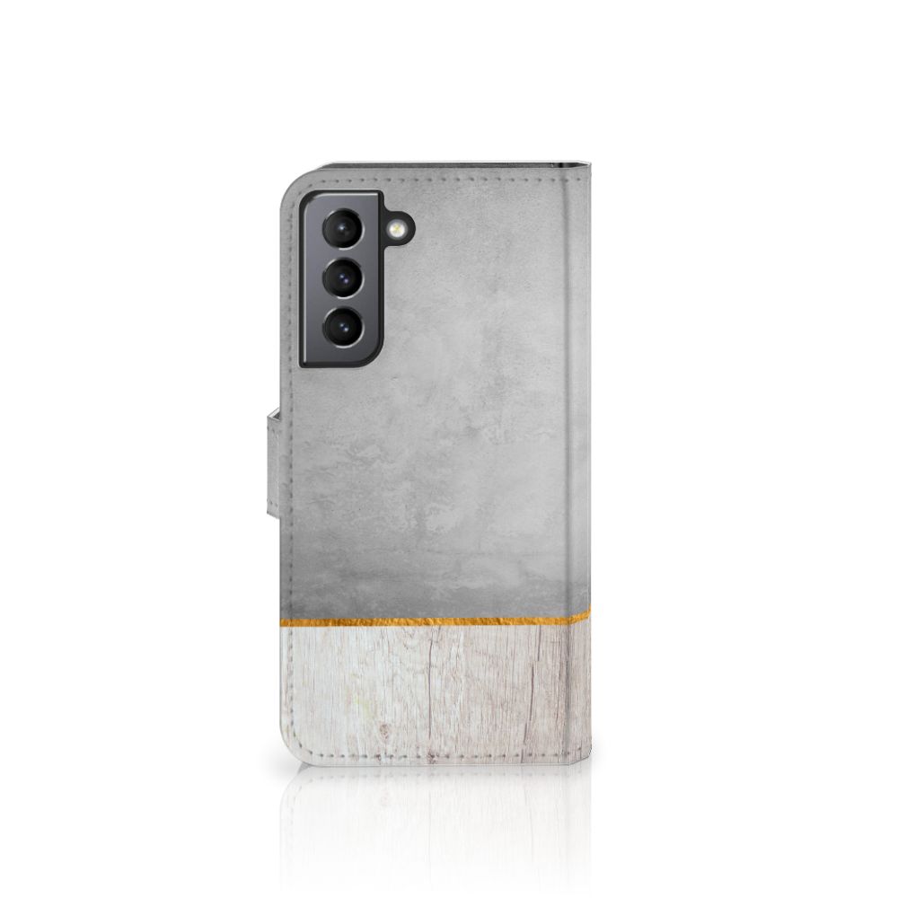 Samsung Galaxy S21 FE Bookstyle Case met pasjes Wood Concrete