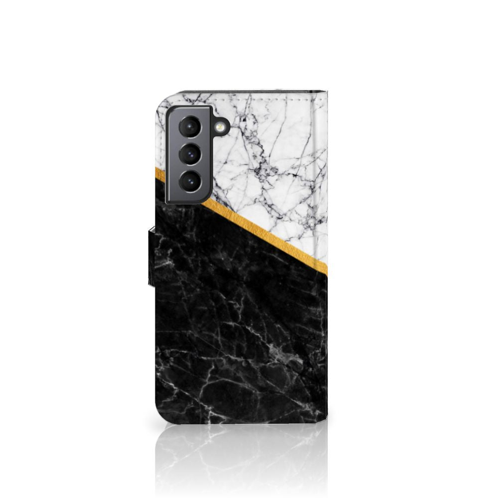 Bookcase Samsung Galaxy S21 FE Marmer Wit Zwart