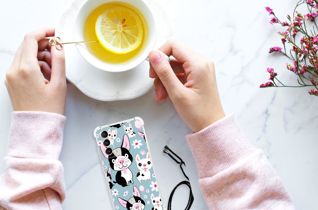 Ben je op zoek naar een uniek telefoonhoesje voor je Samsung Galaxy S21 FE? Dan ben je bij B2C Telecom aan het juiste adres! Speciaal voor jou hebben we dit prachtige Hondjes design in onze collectie hoesjes opgenomen. Het design wordt bedrukt op een Case Anti-shock en is gemaakt van flexibel rubber. Het hoesje is perfect voor de actieve smartphonegebruiker door de opstaande randen/hoeken. Denk aan mensen die veel sporten, reizen of wandelen en net iets meer zekerheid willen als het op hun geliefde telefoon aankomt. Het design wordt alleen aan de bovenkant van het hoesje bedrukt en de randen blijven transparant. Aan de zijkanten zijn uitsparingen gemaakt waardoor je met gemak alle knoppen en poorten kunt bedienen. Wij adviseren om dit hoesje in combinatie met een screenprotector te gebruiken voor een langere levensduur van je telefoon. Wil je dit hoesje nog iets extra's geven? Voeg dan gratis je naam of een quote toe! Is dit design hoesje toch niet helemaal wat je zocht? Ontwerp dan zelf een hoesje in ons ontwerpprogramma.