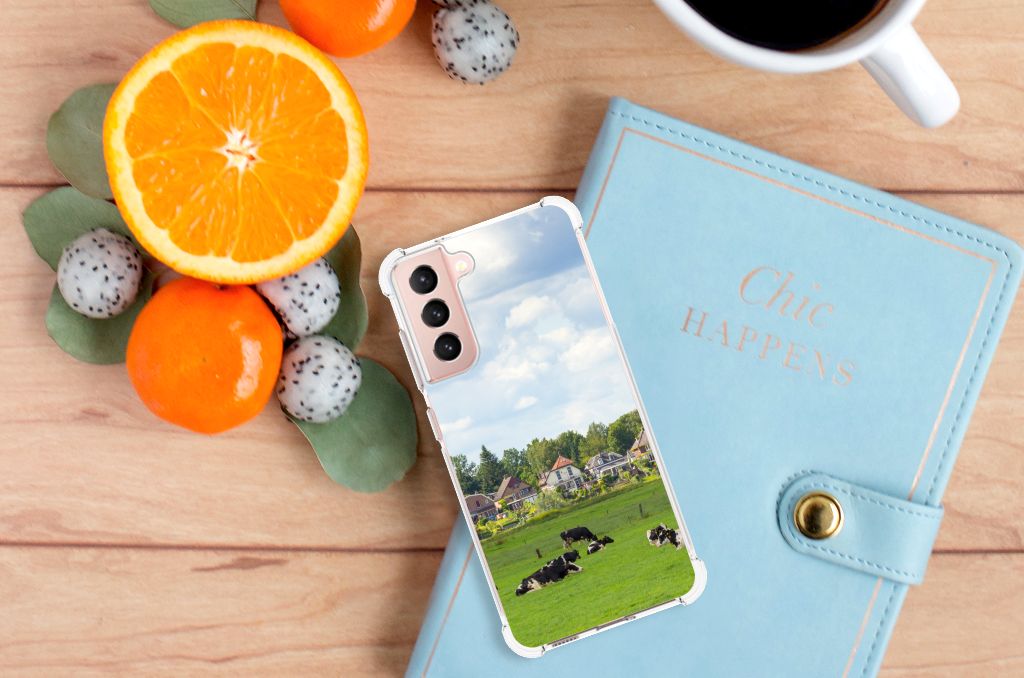Ben je op zoek naar een uniek telefoonhoesje voor je Samsung Galaxy S21 FE? Dan ben je bij B2C Telecom aan het juiste adres! Speciaal voor jou hebben we dit prachtige Koeien design in onze collectie hoesjes opgenomen. Het design wordt bedrukt op een Case Anti-shock en is gemaakt van flexibel rubber. Het hoesje is perfect voor de actieve smartphonegebruiker door de opstaande randen/hoeken. Denk aan mensen die veel sporten, reizen of wandelen en net iets meer zekerheid willen als het op hun geliefde telefoon aankomt. Het design wordt alleen aan de bovenkant van het hoesje bedrukt en de randen blijven transparant. Aan de zijkanten zijn uitsparingen gemaakt waardoor je met gemak alle knoppen en poorten kunt bedienen. Wij adviseren om dit hoesje in combinatie met een screenprotector te gebruiken voor een langere levensduur van je telefoon. Wil je dit hoesje nog iets extra's geven? Voeg dan gratis je naam of een quote toe! Is dit design hoesje toch niet helemaal wat je zocht? Ontwerp dan zelf een hoesje in ons ontwerpprogramma.