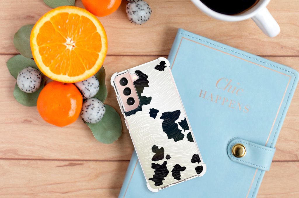 Ben je op zoek naar een uniek telefoonhoesje voor je Samsung Galaxy S21 FE? Dan ben je bij B2C Telecom aan het juiste adres! Speciaal voor jou hebben we dit prachtige Koeienvlekken design in onze collectie hoesjes opgenomen. Het design wordt bedrukt op een Case Anti-shock en is gemaakt van flexibel rubber. Het hoesje is perfect voor de actieve smartphonegebruiker door de opstaande randen/hoeken. Denk aan mensen die veel sporten, reizen of wandelen en net iets meer zekerheid willen als het op hun geliefde telefoon aankomt. Het design wordt alleen aan de bovenkant van het hoesje bedrukt en de randen blijven transparant. Aan de zijkanten zijn uitsparingen gemaakt waardoor je met gemak alle knoppen en poorten kunt bedienen. Wij adviseren om dit hoesje in combinatie met een screenprotector te gebruiken voor een langere levensduur van je telefoon. Wil je dit hoesje nog iets extra's geven? Voeg dan gratis je naam of een quote toe! Is dit design hoesje toch niet helemaal wat je zocht? Ontwerp dan zelf een hoesje in ons ontwerpprogramma.